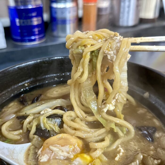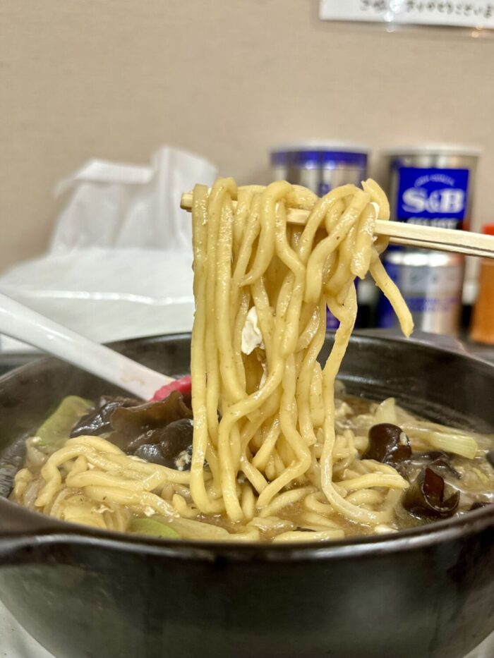 そのスープを際立たせるのが、うどんちょい手前な太麺。
