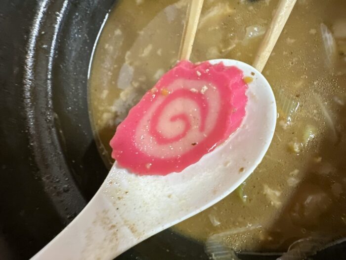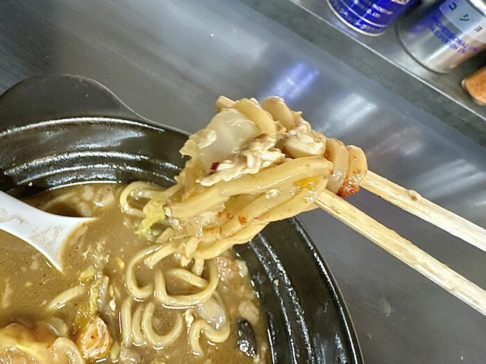 これがクスリガマリなスープにちょんどよく調和、しかも麺量もしっかり確保してあるっぽいのが尚更に素敵( ತಎತ)