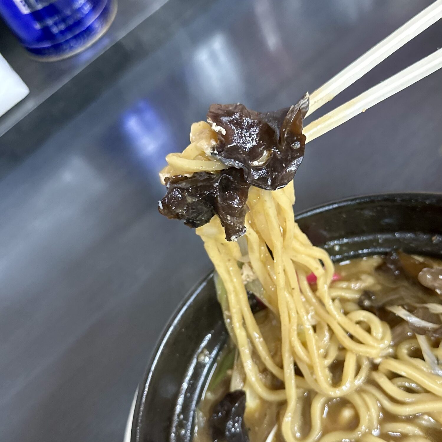 これがクスリガマリなスープにちょんどよく調和、しかも麺量もしっかり確保してあるっぽいのが尚更に素敵( ತಎತ)