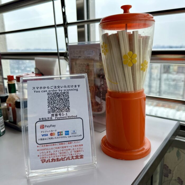 特徴的なのがその入店システム、クレジットカード及びPayPay払いはそのまま入ってって空いてる席でQRコード注文&キャッシュレス清算