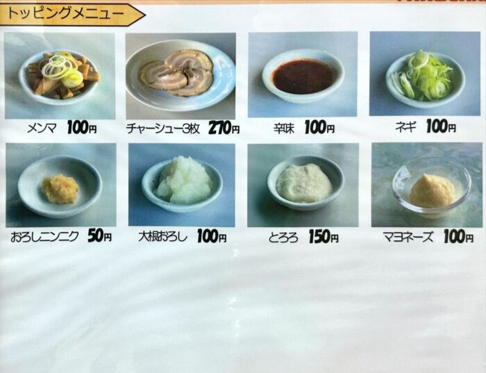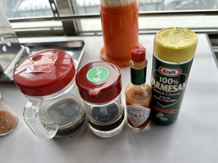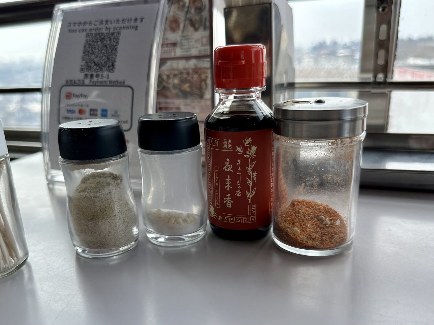 その豊富な卓上調味料群も、メニューの多さをそっと静かに物語る