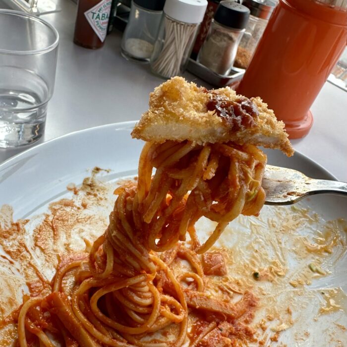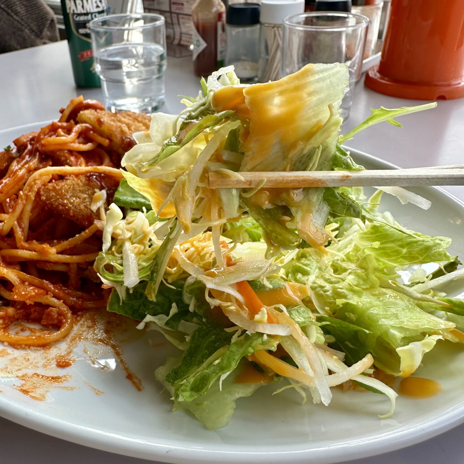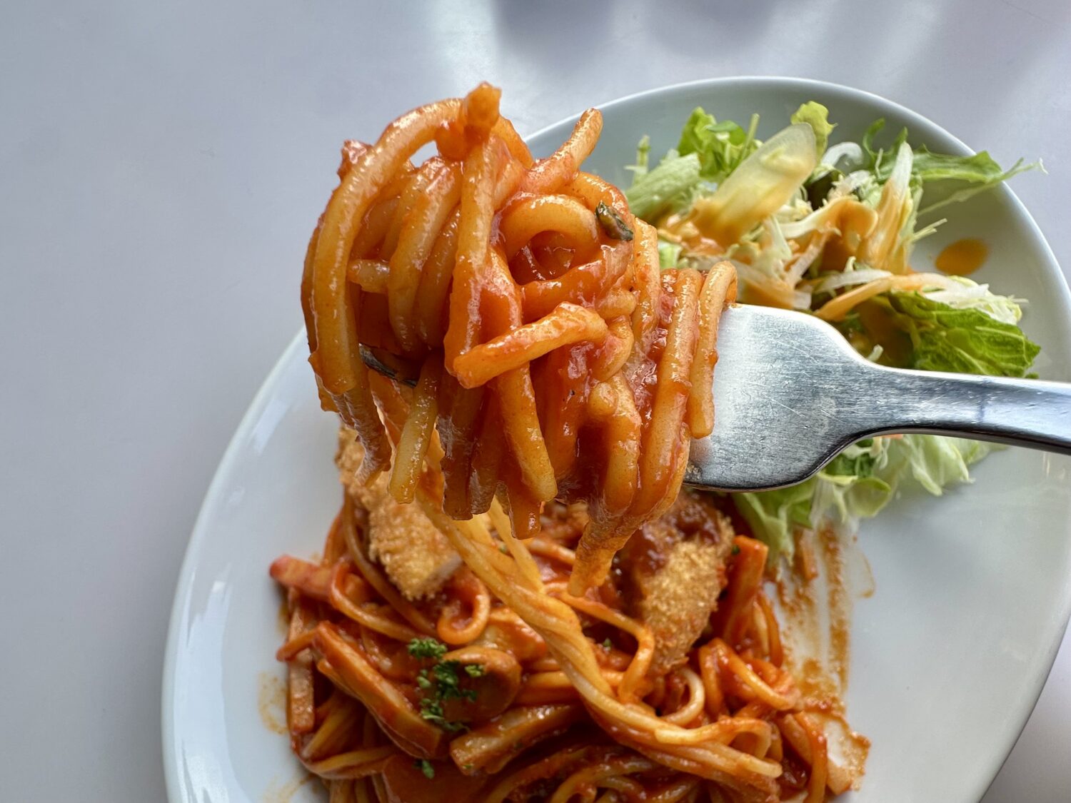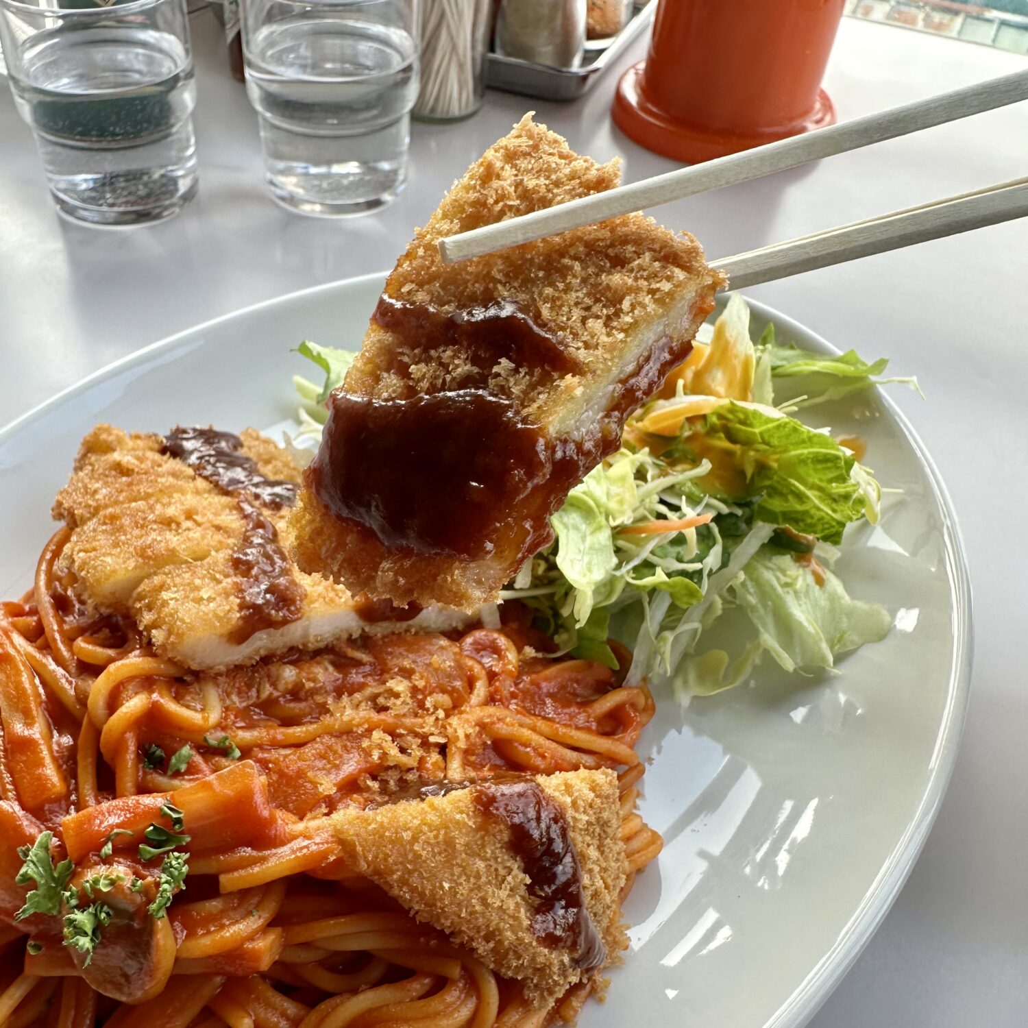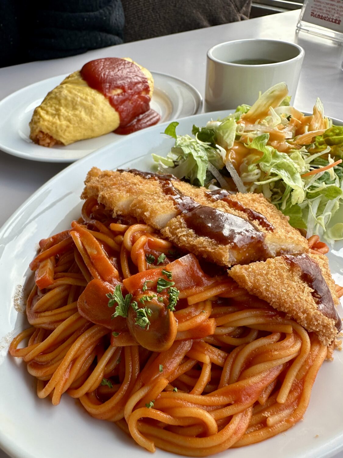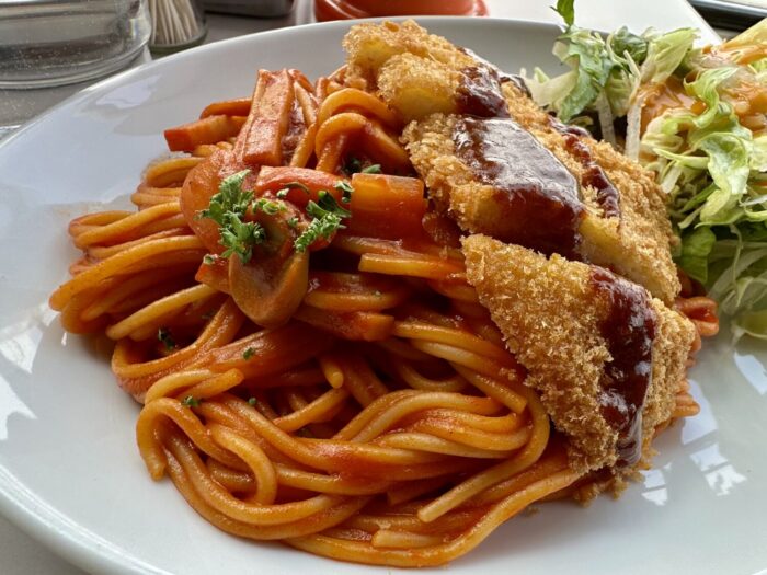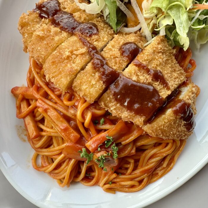 ナポリタンにチーズカツの帽子を被せてみた、そしたらヴィレッジのドミトレスクに見えてきた(˙ ૄ˙ ;)