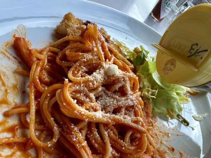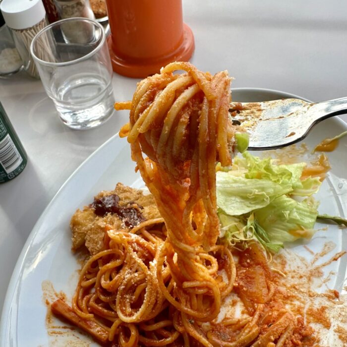 続いてナポリタンをズルムチャゴックン、はーい先生フルボディな赤ワインが呑みたいでーす(`・⊝・´)◞