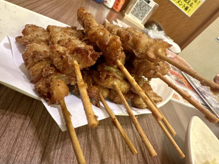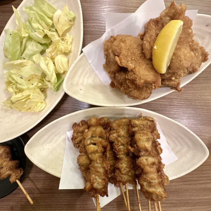 スパイシー串の100に唐揚げが300で塩キャベツがマイナス500、うんうん、これはトータルで痩せるやづ