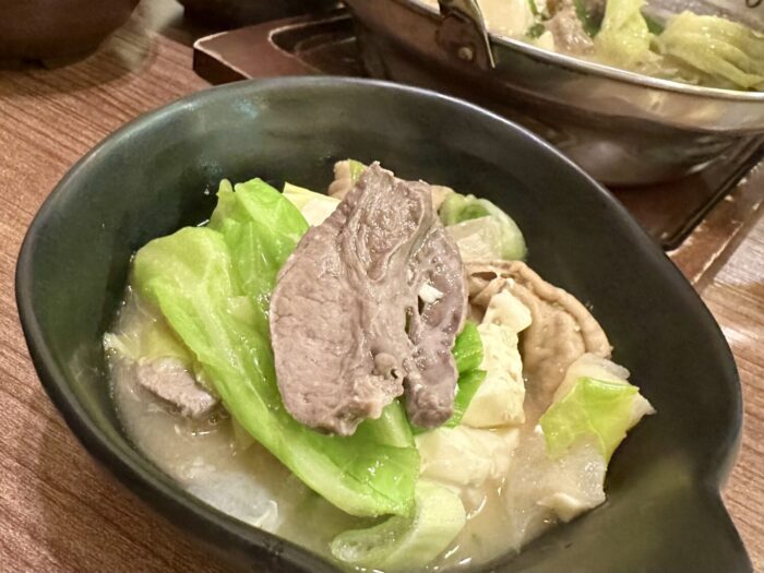 年甲斐もなく序盤に油モノ大量に摂りすぎたせいか、思ったより喰えない御一行はモツ煮込みで終盤へ