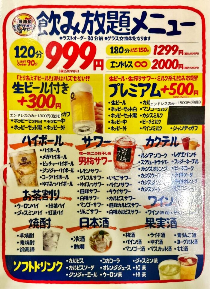 とりあえず「飲み放題120分(10本生ビール有り) ¥1,429」はマストっしょ、あと選べるお通しは口癖で塩キャベツの一択っしょ\( *ω*)┓
