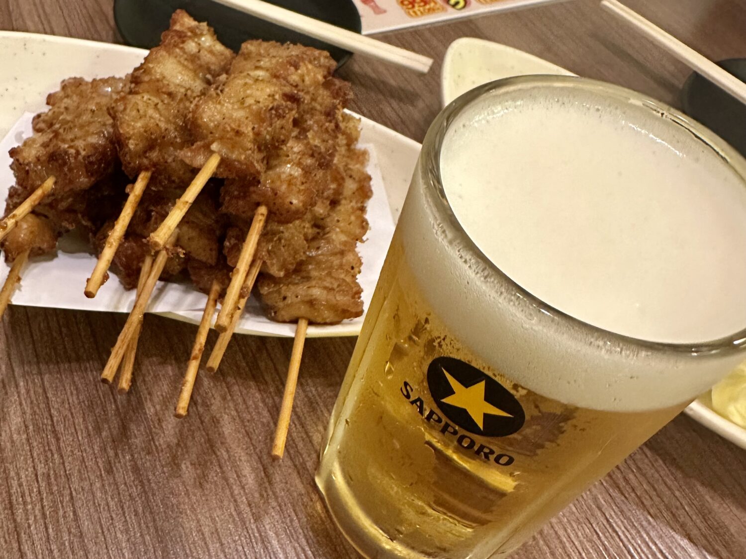 スパイシー串の100に唐揚げが300で塩キャベツがマイナス500、うんうん、これはトータルで痩せるやづ