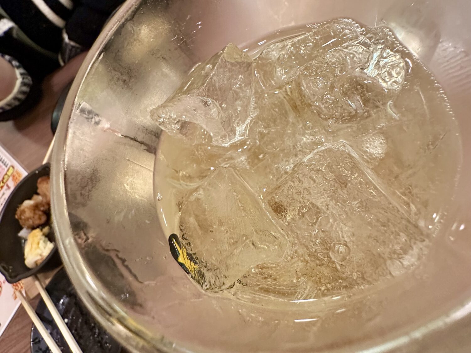 そして今日もハイボはメガハイボール、たとえ炭酸が既に死んでいようとほぼほぼ氷の重さだとしてもつい頼んじゃう