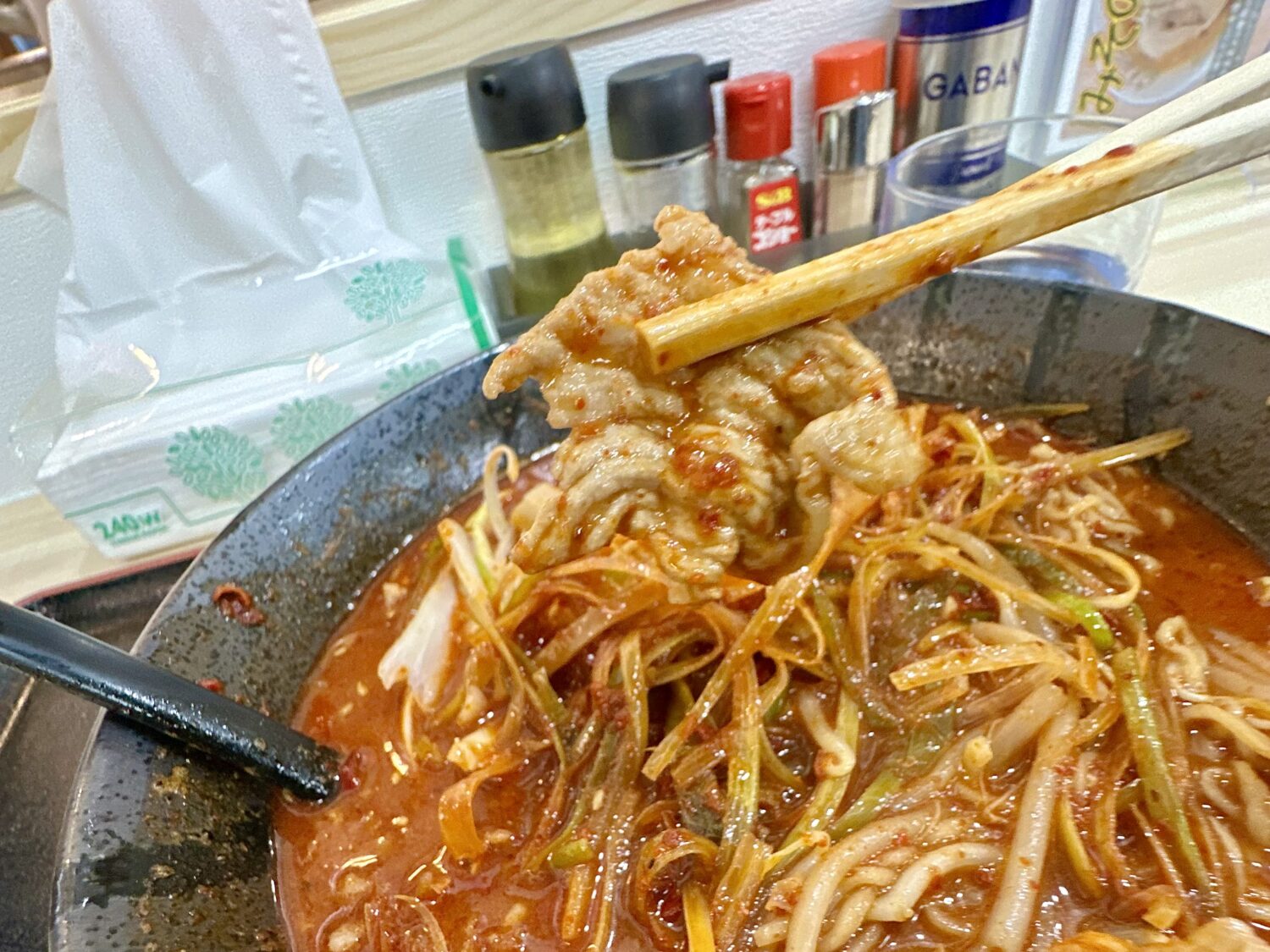 辛ネギと絡め喰う、この頃になるともう舌も唇も感覚飛んじゃっててただただ美味い