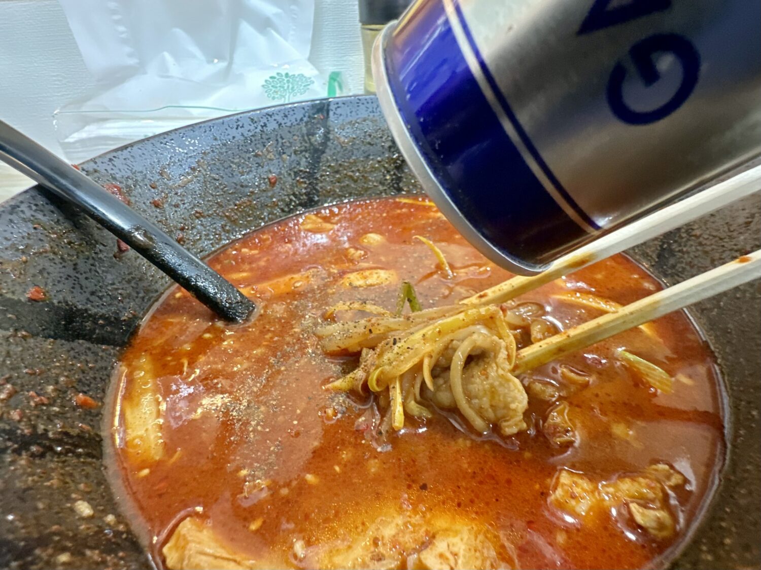 ニンニグってほんと偉大、あんなに辛くて痛かったスープが辛くて痛くてプガッとするスープに大変身