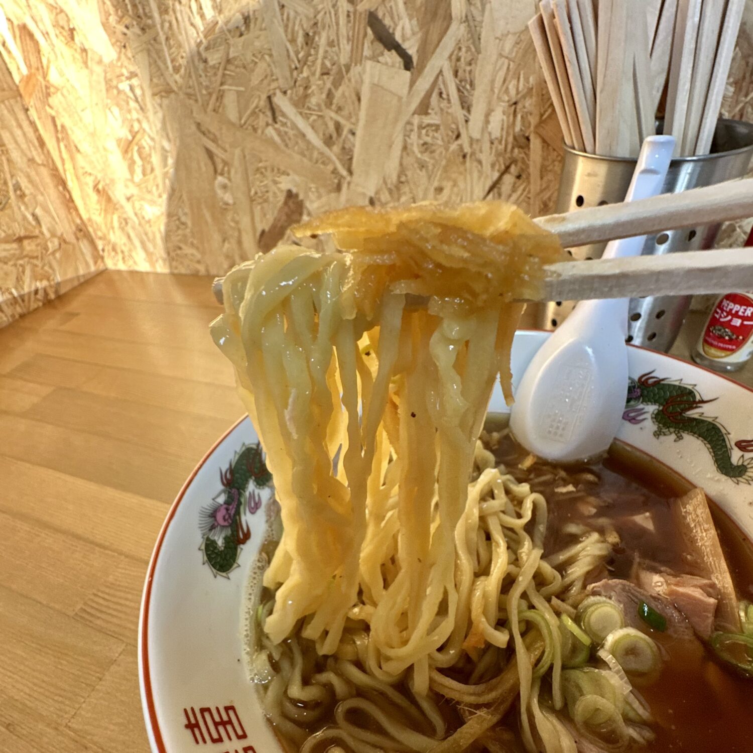 よくある煮干し感ウッスラのアッサリスープとはまるで違う、ドスンと濃いめの煮干しの風味がとっても美味い