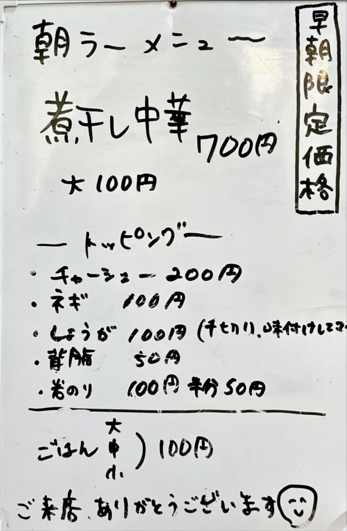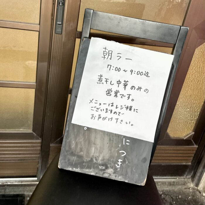 朝は「煮干し中華」のみのワンメニュー。
