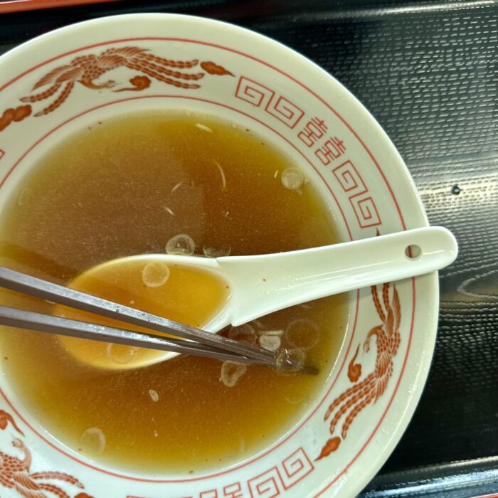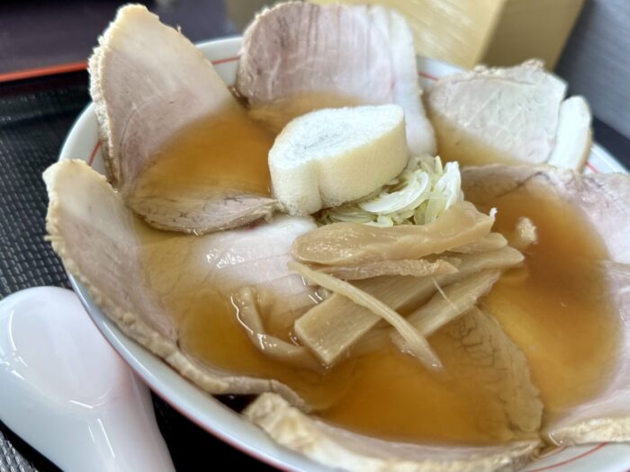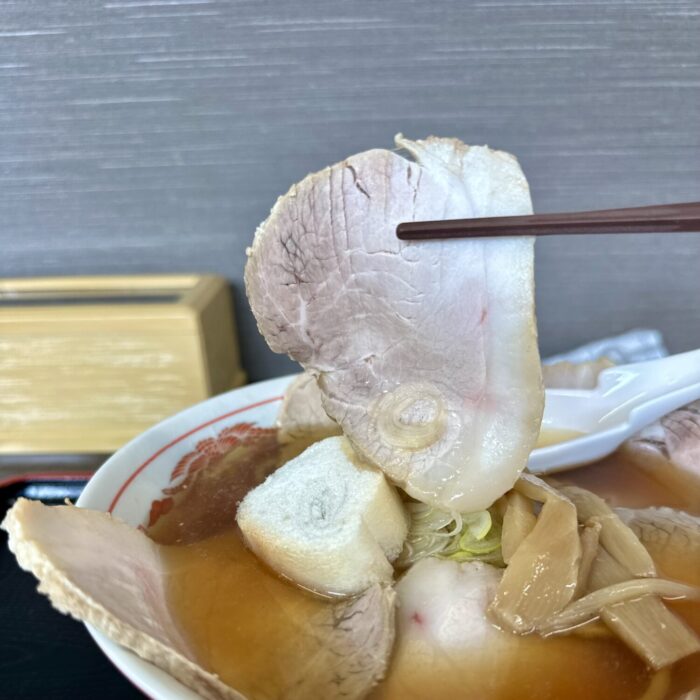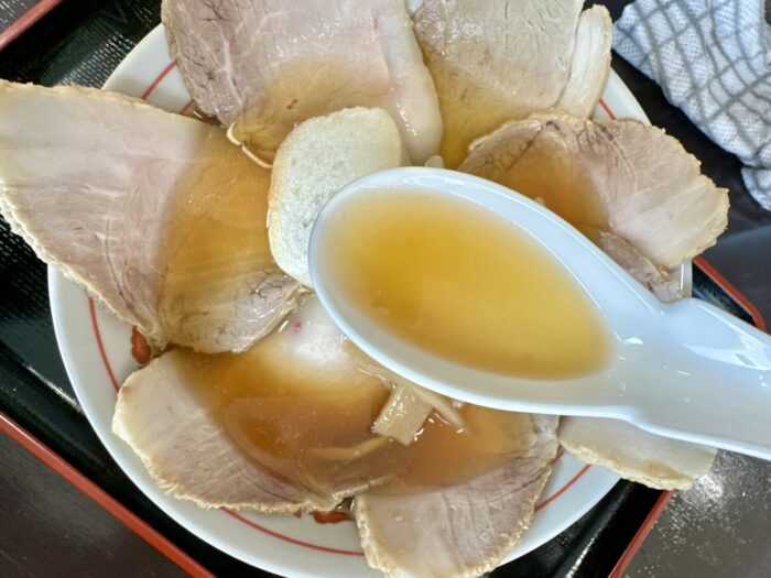 重いレンゲで飲む温度ひと肌プラスちょいぐらいの甘いスープ、たぶん大量のチャーシューが熱奪ってまったんだべなぁ、って飲む
