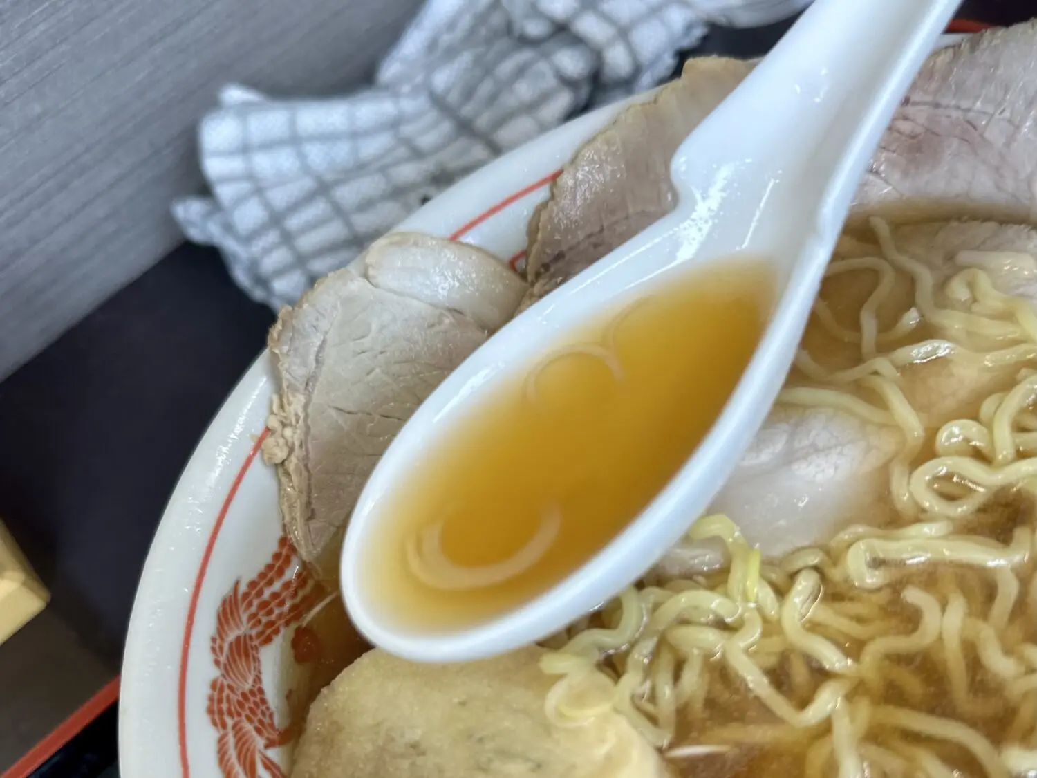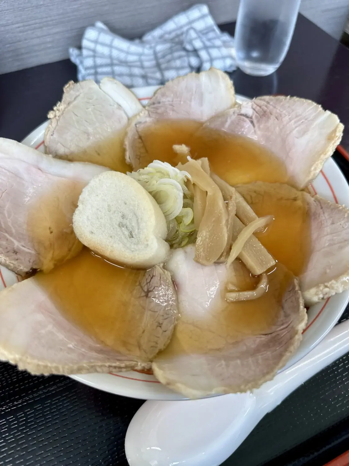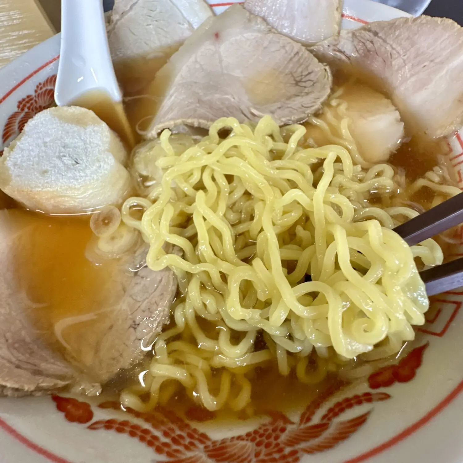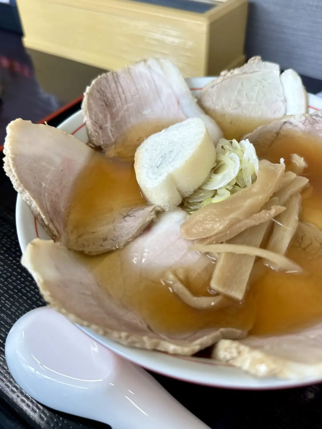 重いレンゲで飲む温度ひと肌プラスちょいぐらいの甘いスープ、たぶん大量のチャーシューが熱奪ってまったんだべなぁ、って飲む