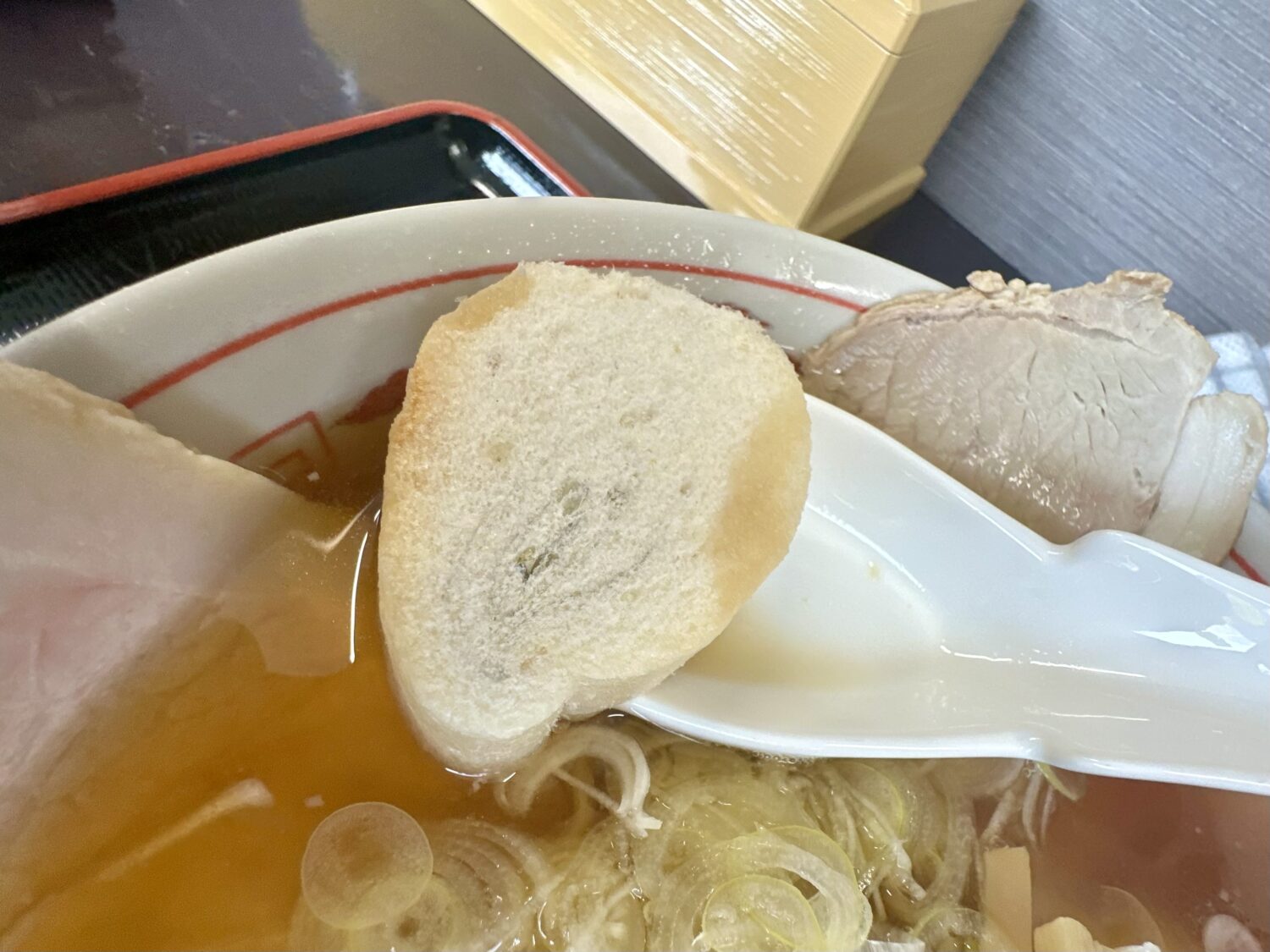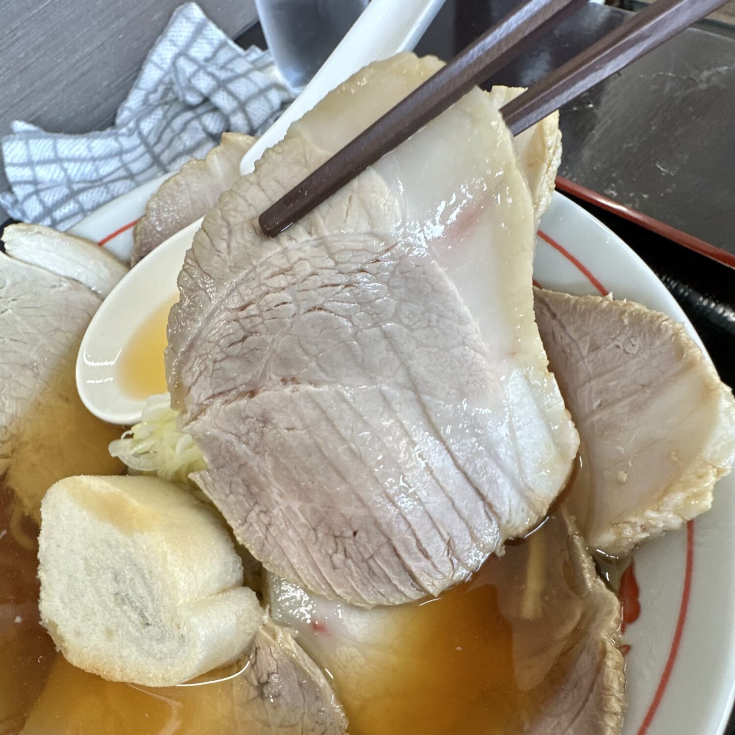 にしてもこのチャーシュー、何かを掴んで持ち上げるにはちょんどよさそうな、、