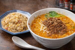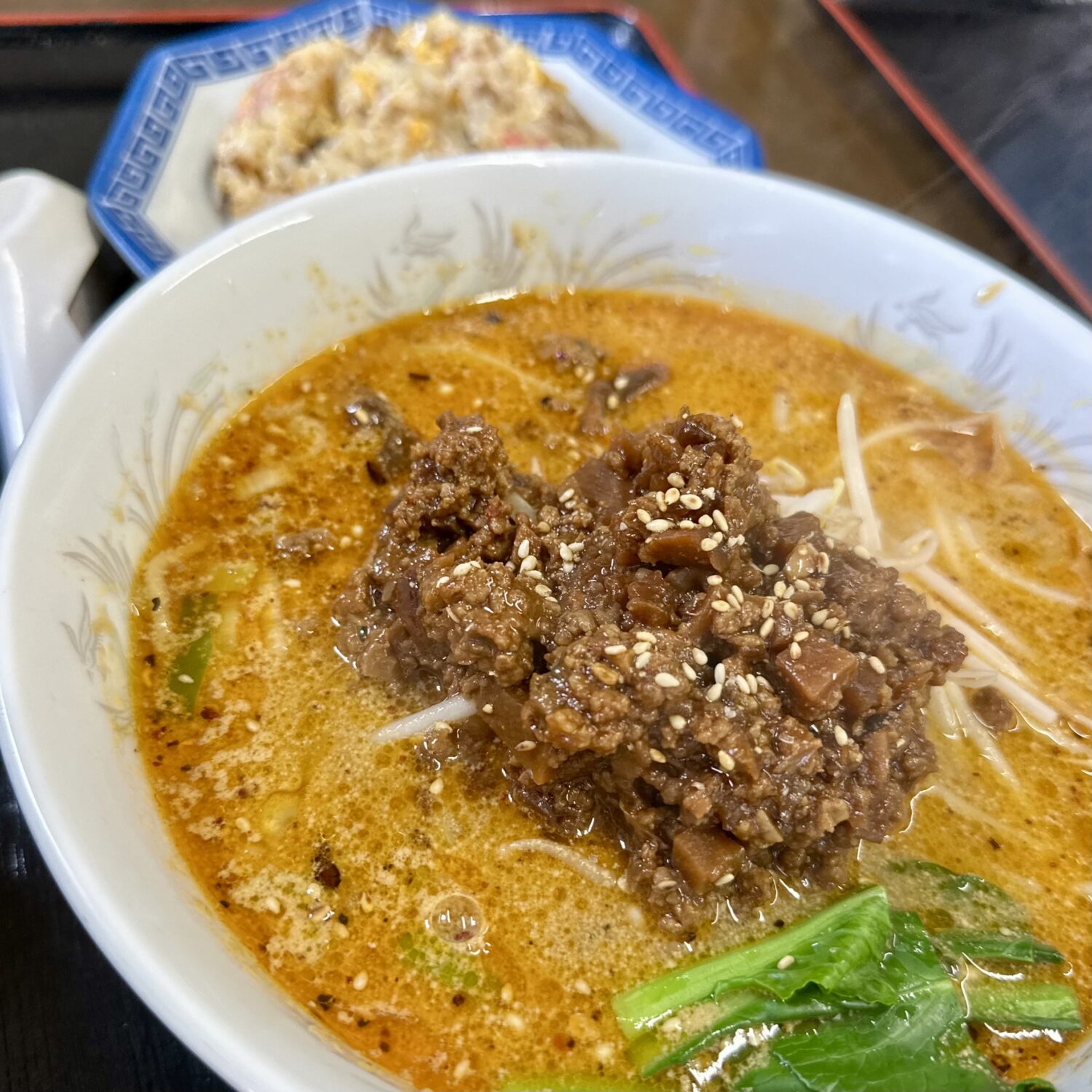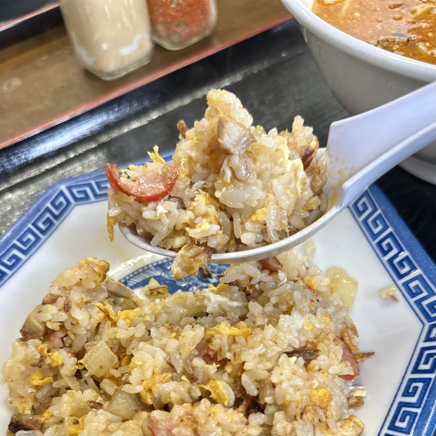 • つがる市木造の百年食堂【神武食堂】でいっつも人気の担々麺と合わせて食べたい半チャーハン