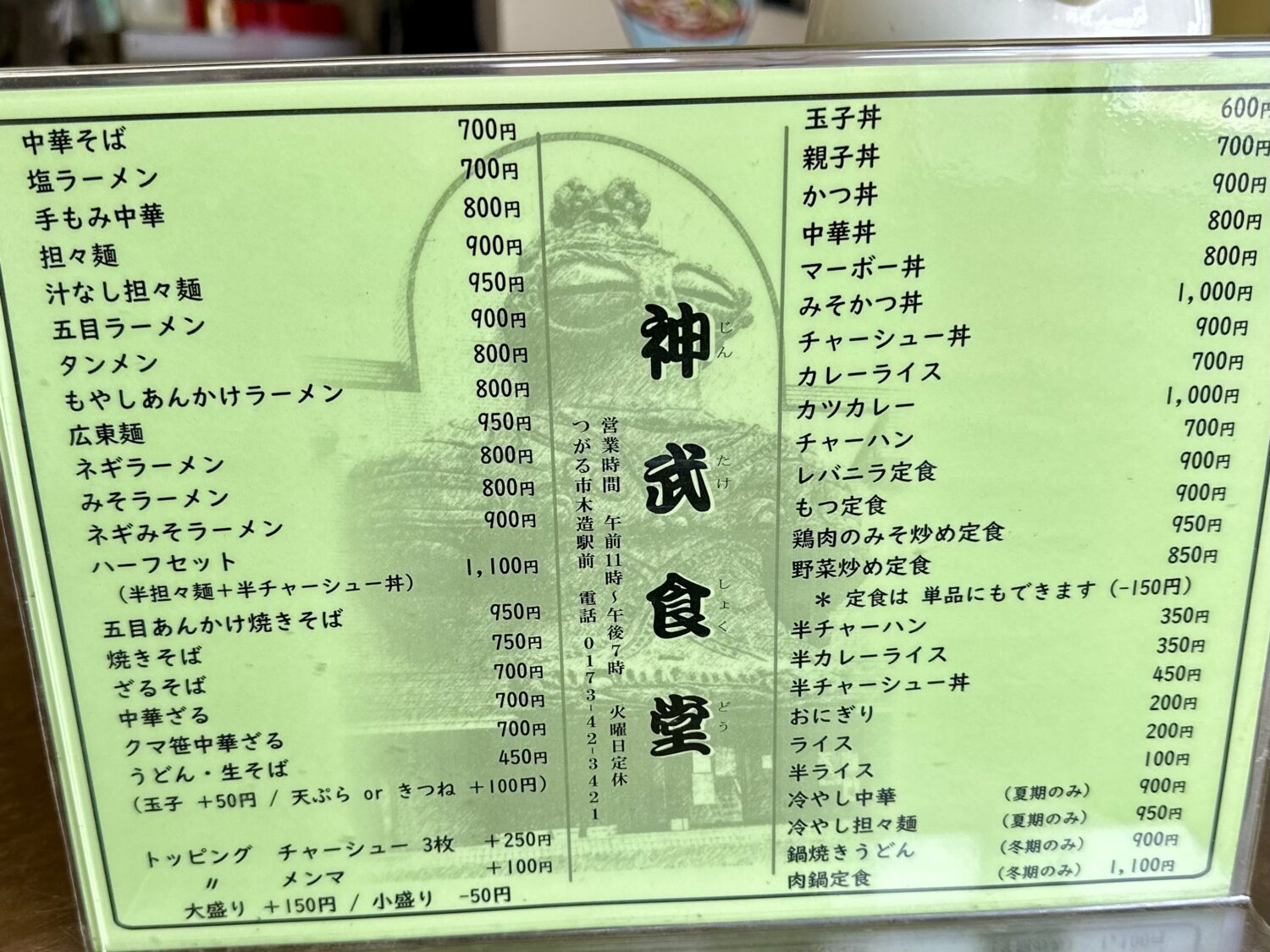 つがる市JR五能線木造駅すぐ目の前の大人気店「神武食堂」まで行って、やっぱり人気の「担々麺」をば喰ってこよう。