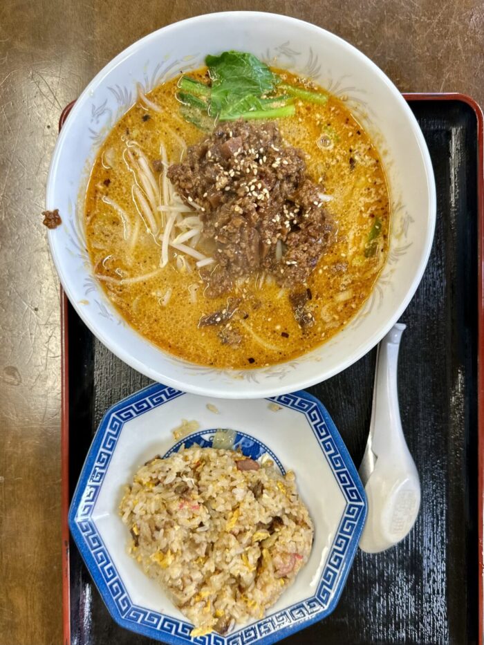 つがる市木造の百年食堂【神武食堂】でいっつも人気の担々麺と合わせて食べたい半チャーハン