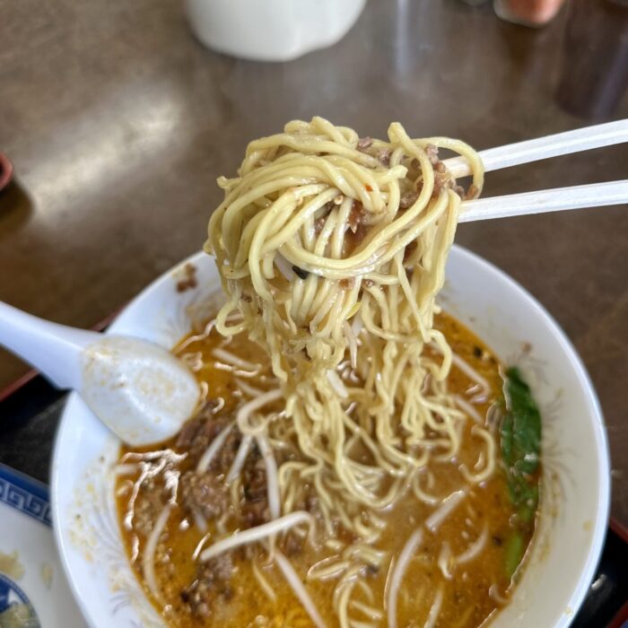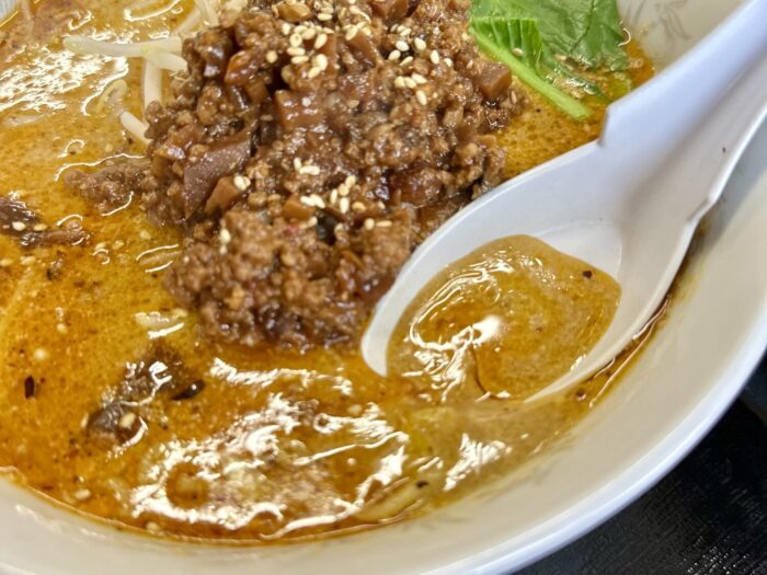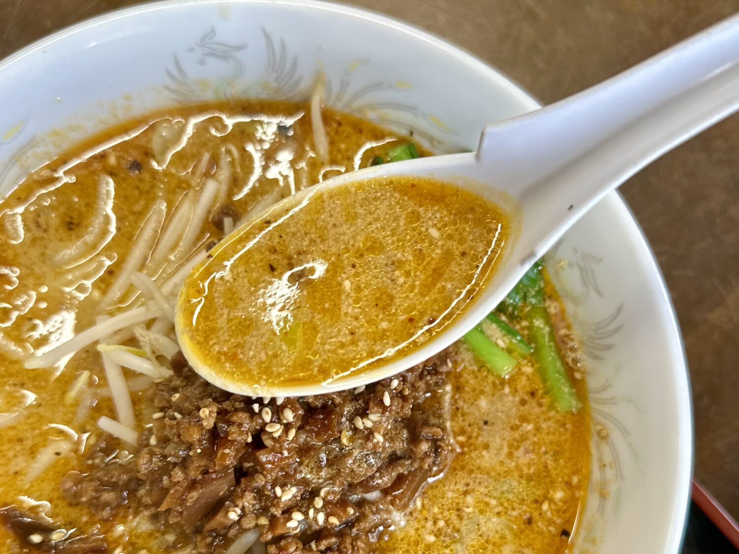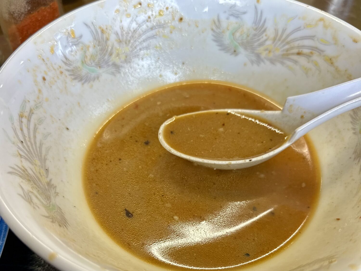 シャバい口当たりの中にゴマっぽさ残るスープはひと口飲んだところでホッとして、なぜか静かに頷かさる味わい
