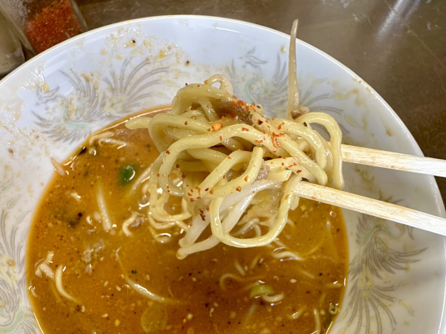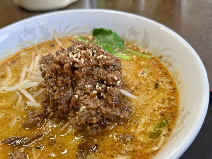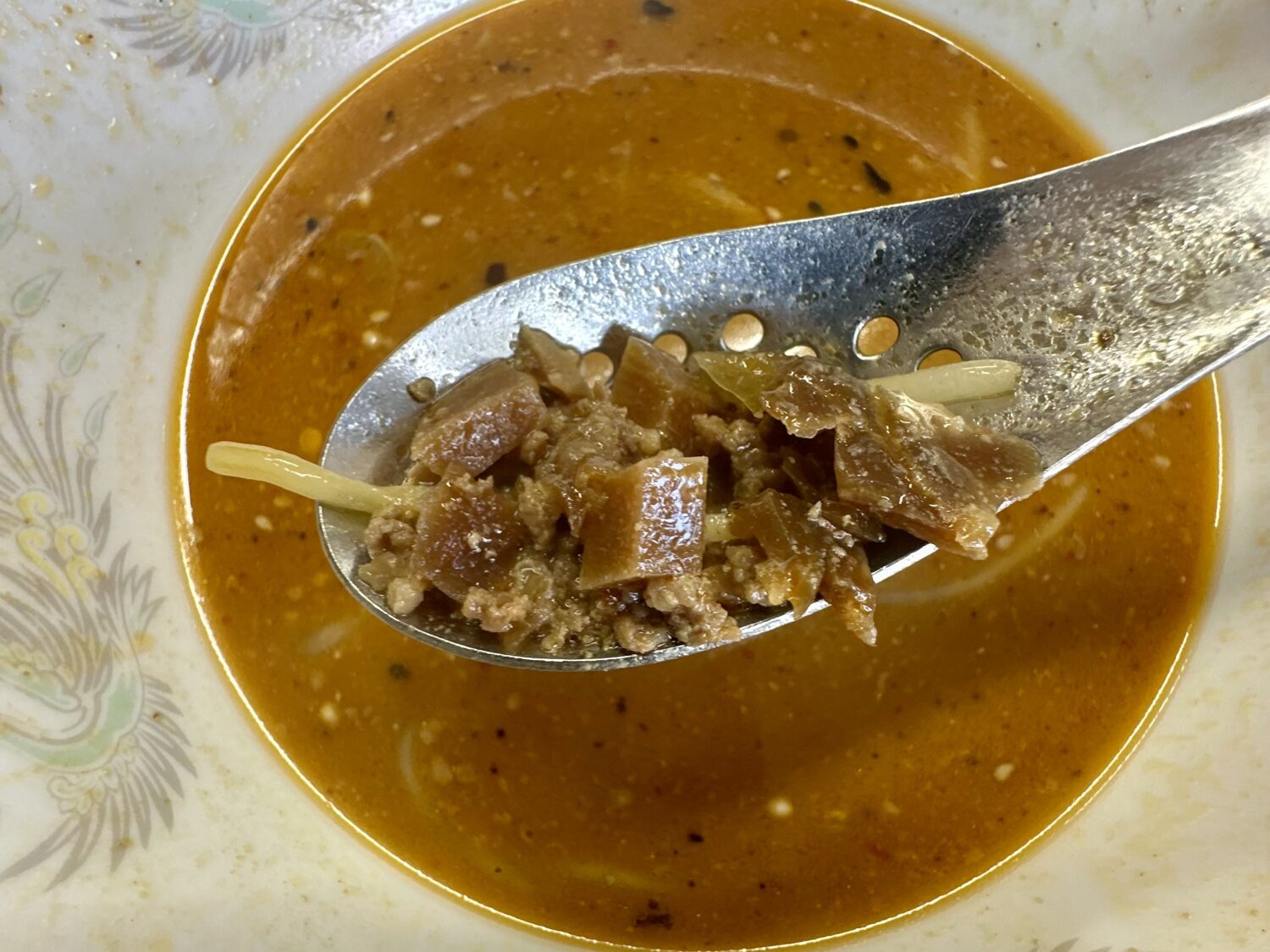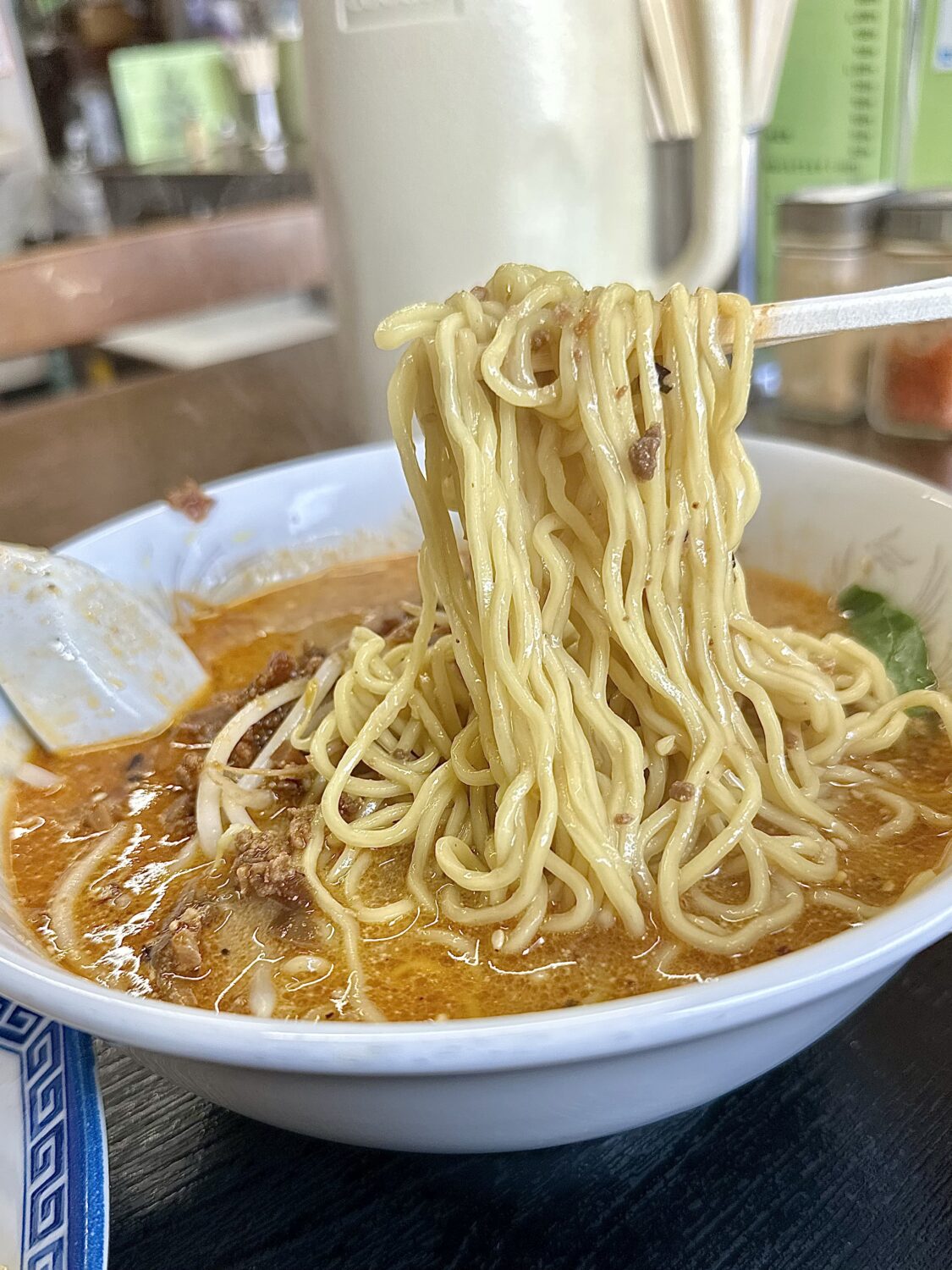 シャバい口当たりの中にゴマっぽさ残るスープはひと口飲んだところでホッとして、なぜか静かに頷かさる味わい