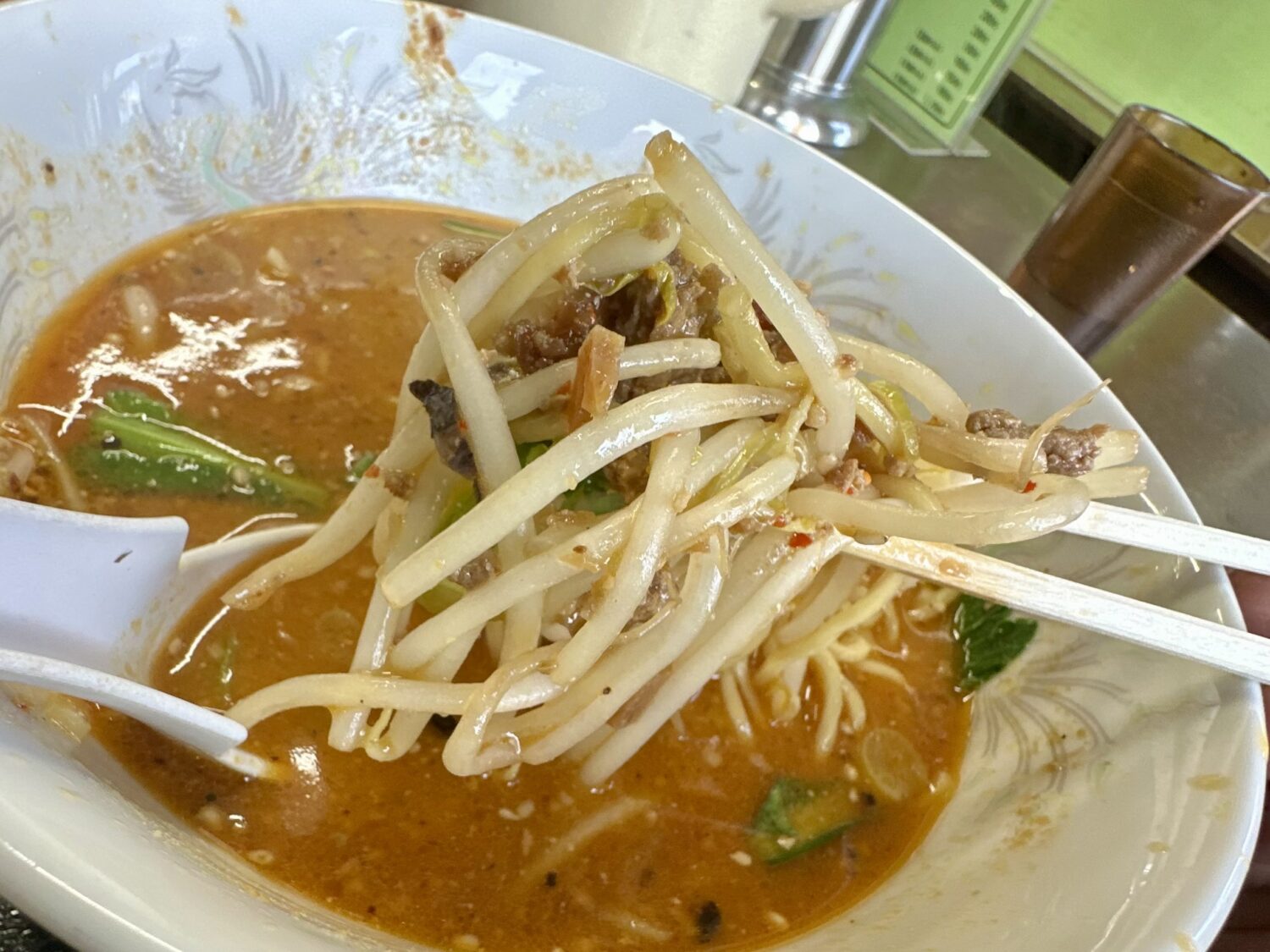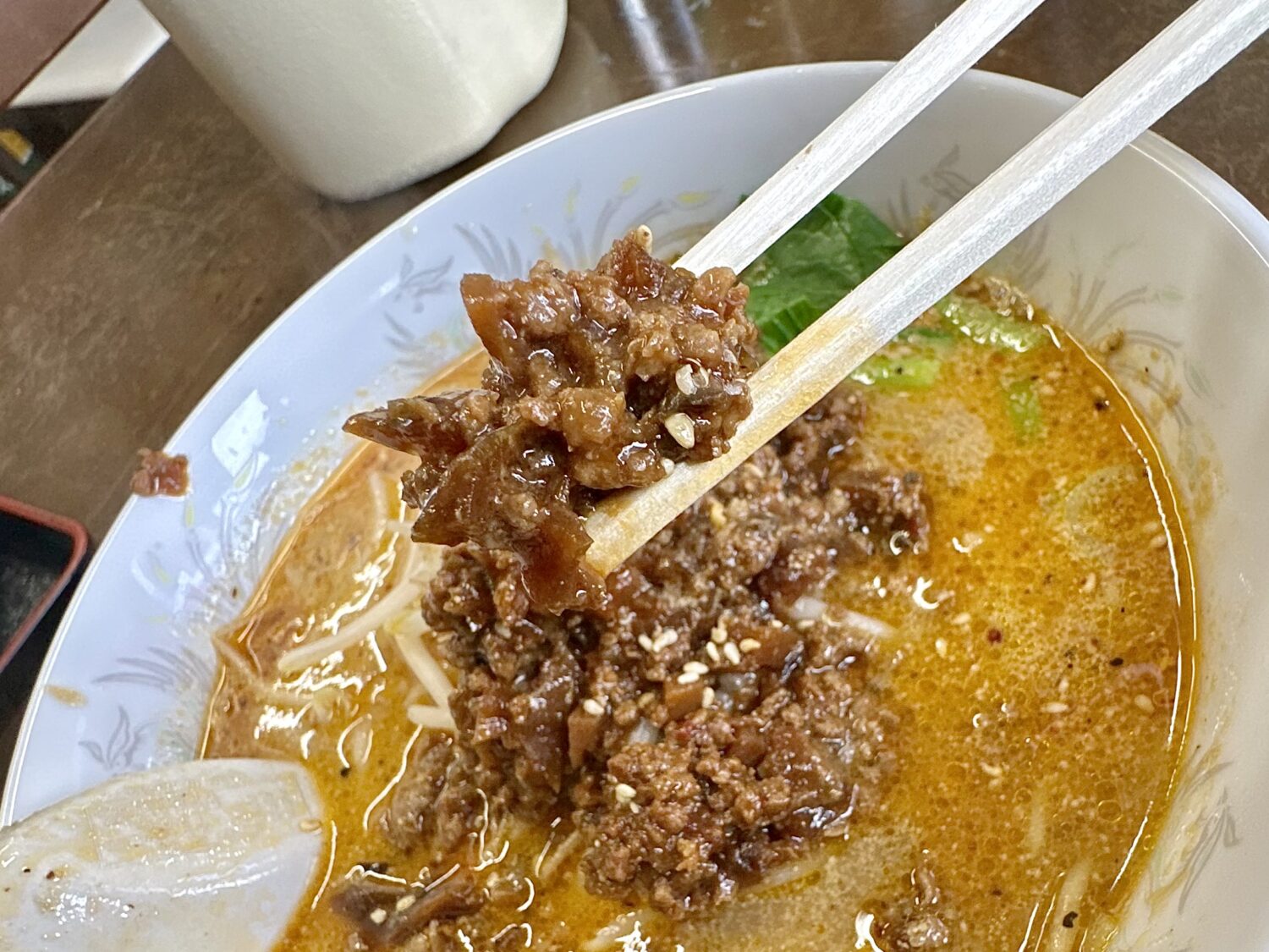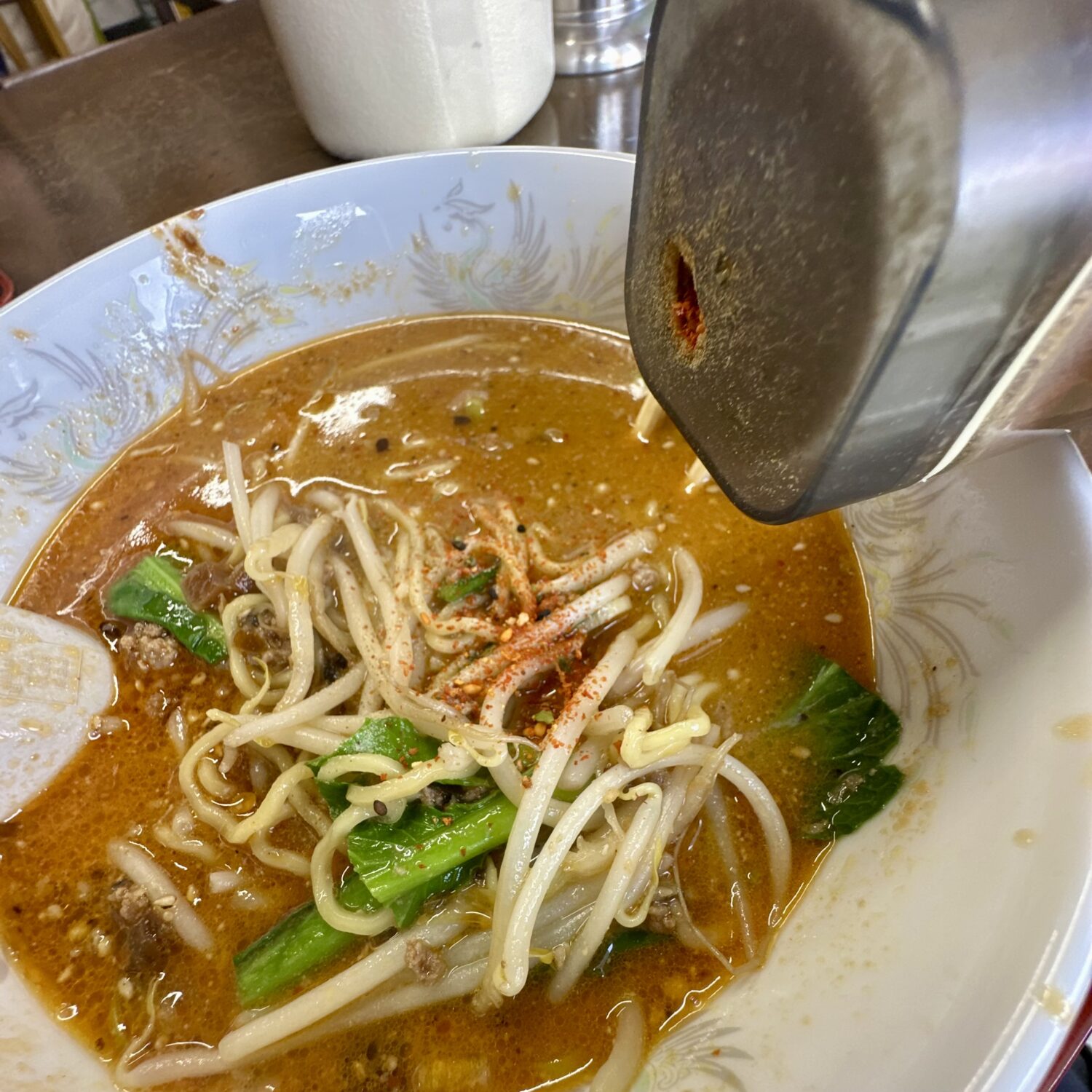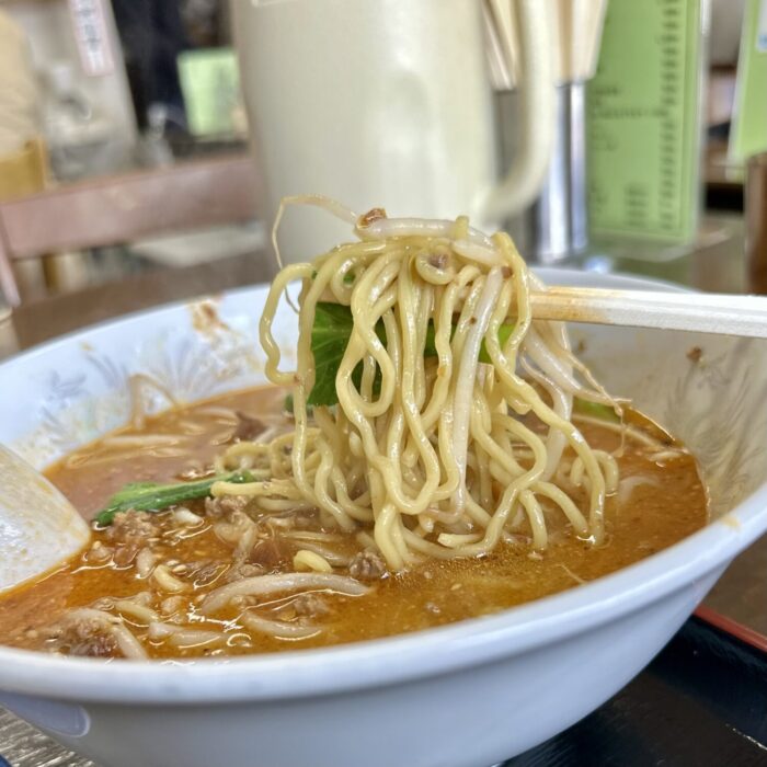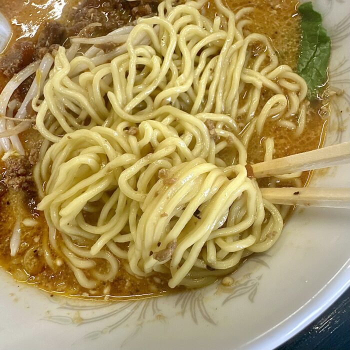 担々麺はシャバめのスープに肉餡を溶かし、一気にススり上げ喰う中細ストレート麺がすごく良き。