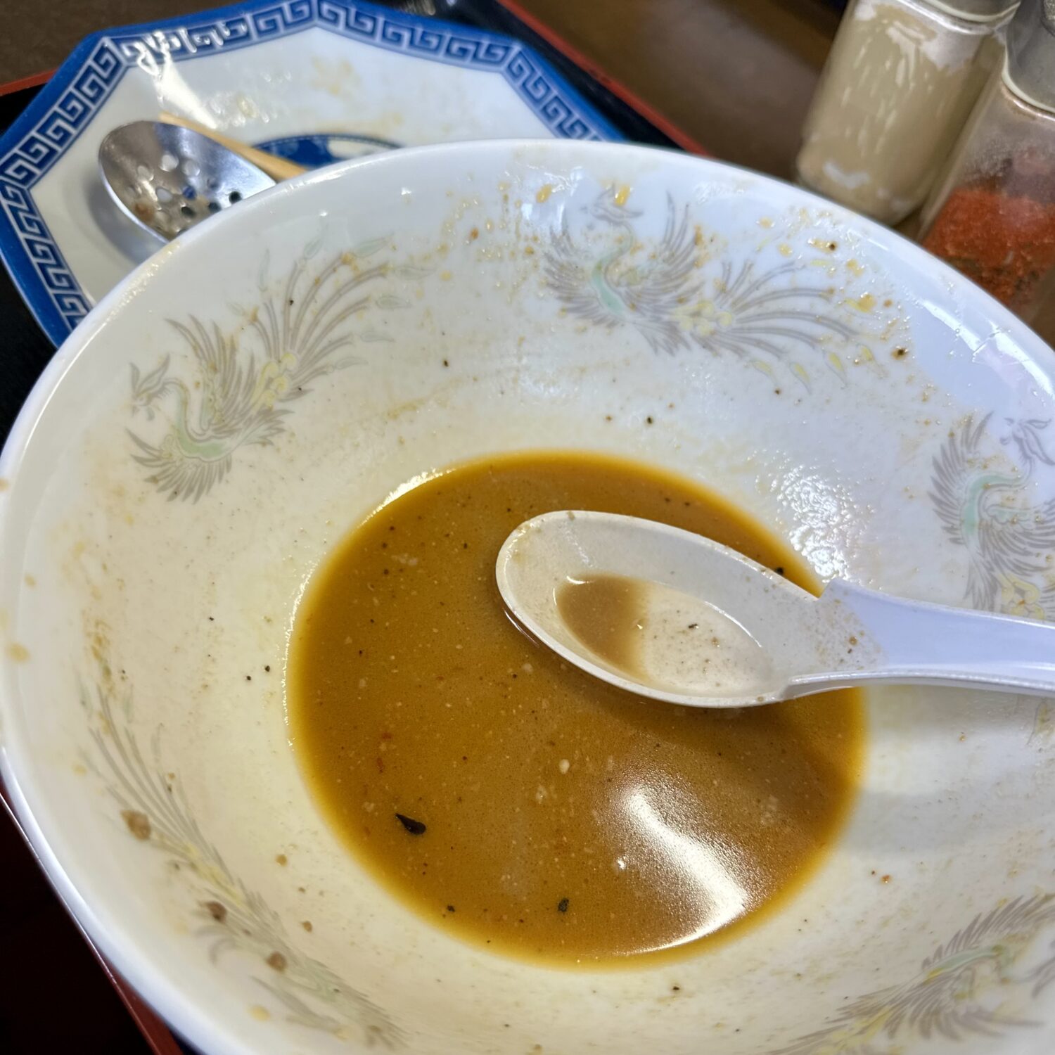 最後は穴あきレンゲで全ての具をすくい上げ、普通レンゲで仕上がり切るとこまでひたすらに飲む
