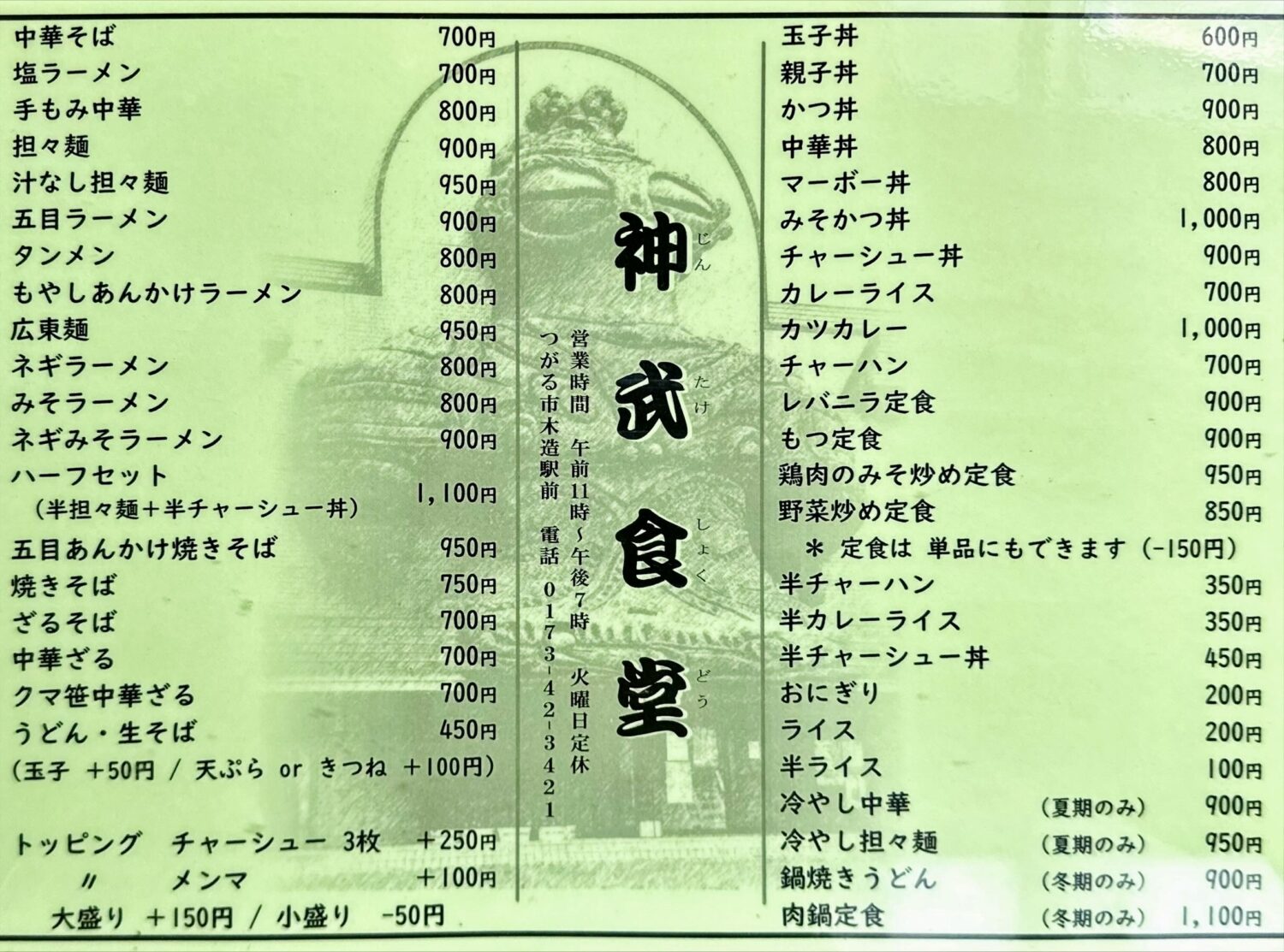 • JR五能線木造駅から目の鼻の先【神武食堂】で喰う広東麺だったり半チャーシュー丼だったり