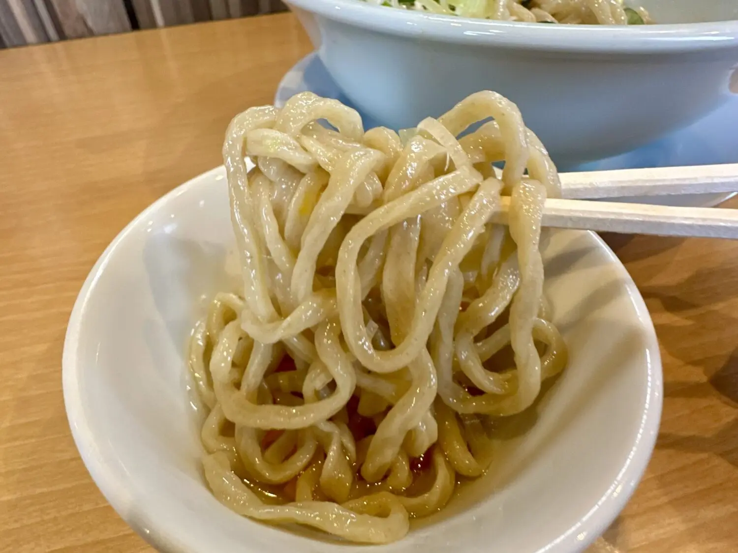 ムタラッと引っ張り上げたところを一気にガブヌルモッチャムシャゴックン、んで気付く、これは麺が完全なる主役だってこと