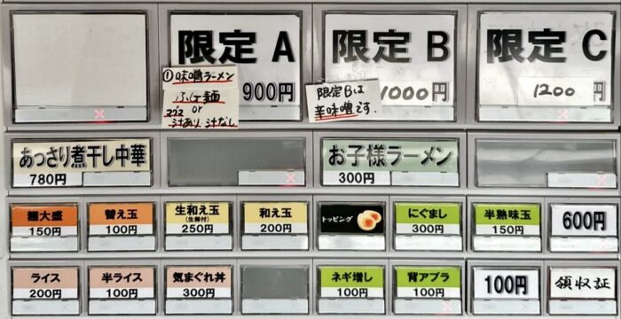 つまり【限定】ボタンで買った食券を、渡す時に[汁あり or 汁無し]→[200g or 300g]、その後に実は[あ?、マシ?アンタやれんのやれんのかいッ?]みたいな選択肢が隠れてたってことだんだべね(;´Д`)