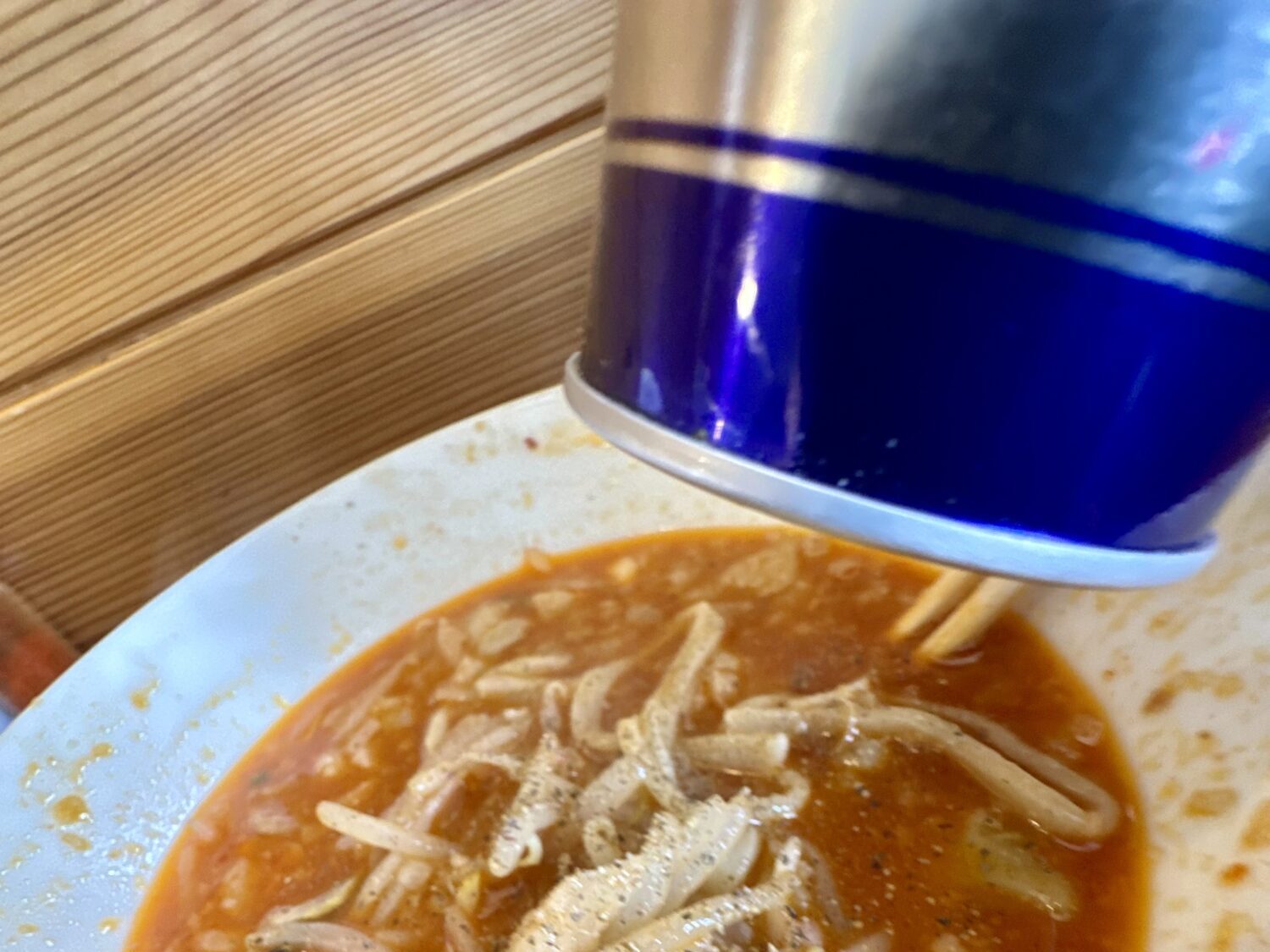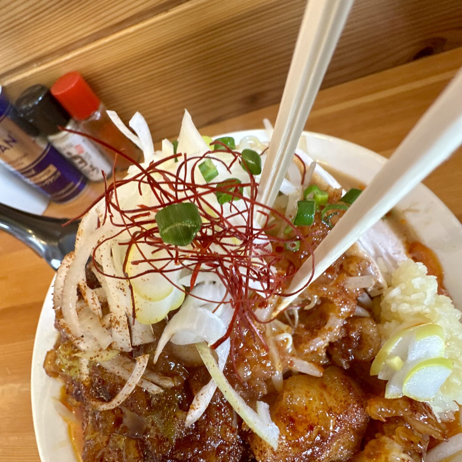 ちなみに辛さは食券渡した時点で選べる仕組み、午後もしっかり仕事残してるハイボは辛くない方から2番目選ぶガチっぷり(˚ଳ˚)