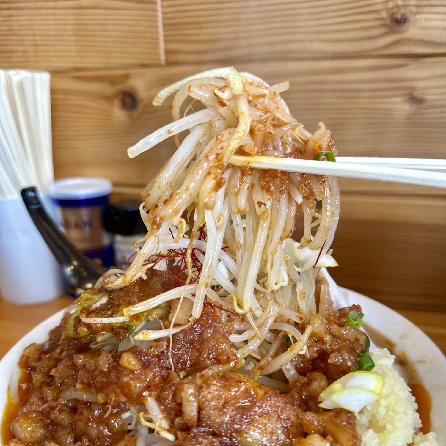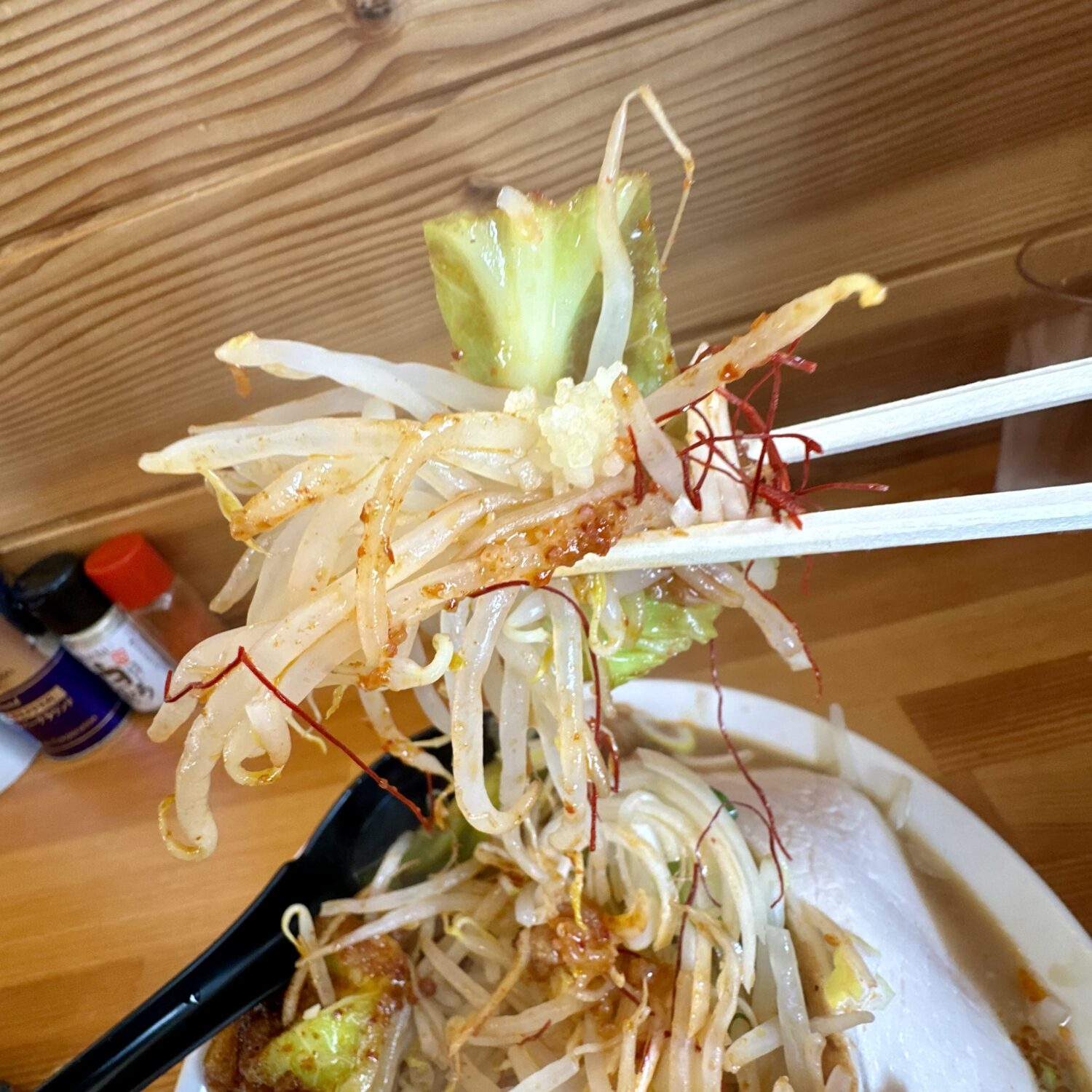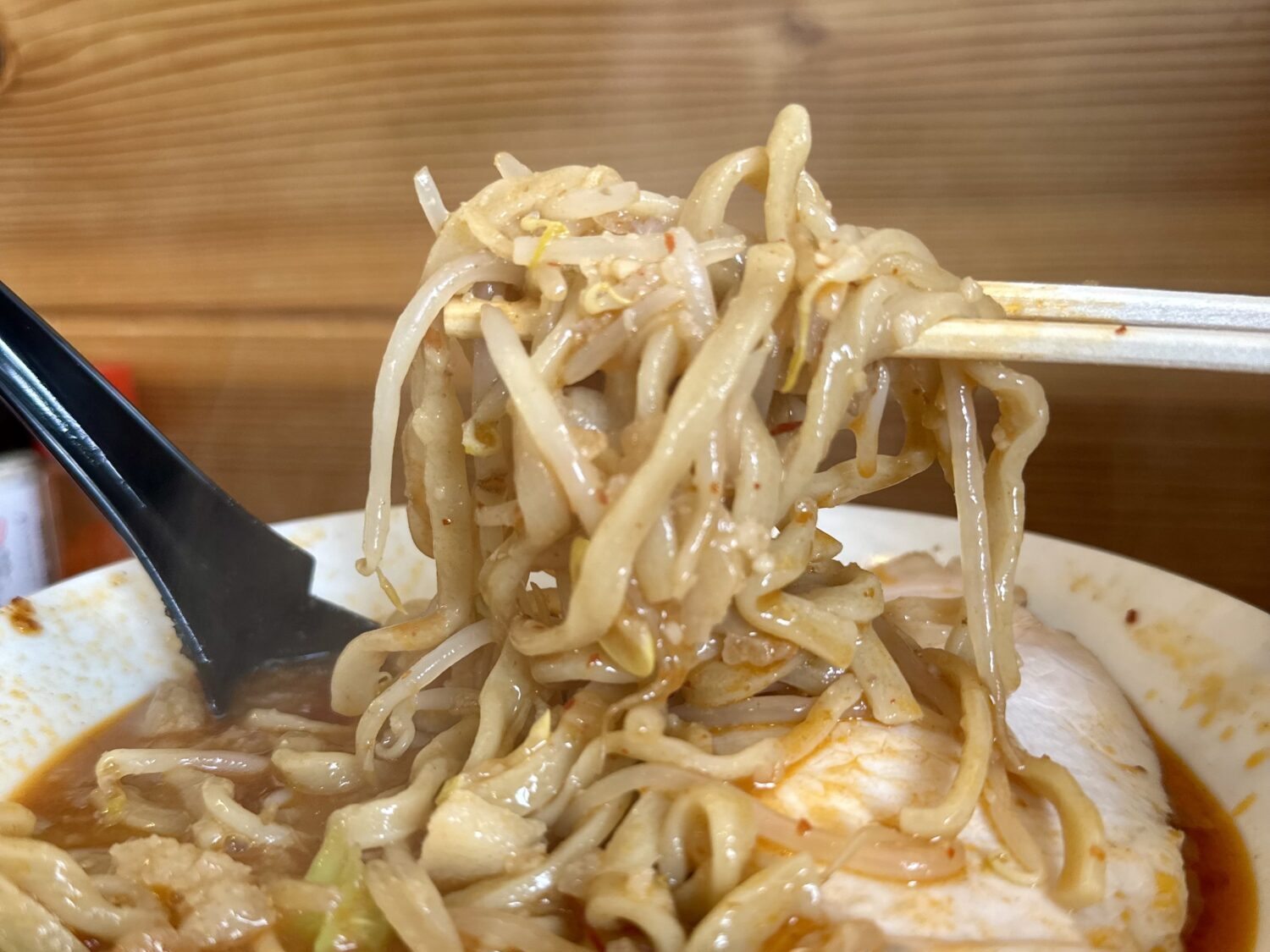 いやだってなんてったって辛味まみれのセアブラだぉん、ジャッキジャキ食感のヤサイに絡めて喰えば幸せ以外の結果ないやづだぉん(◉ω◉`)