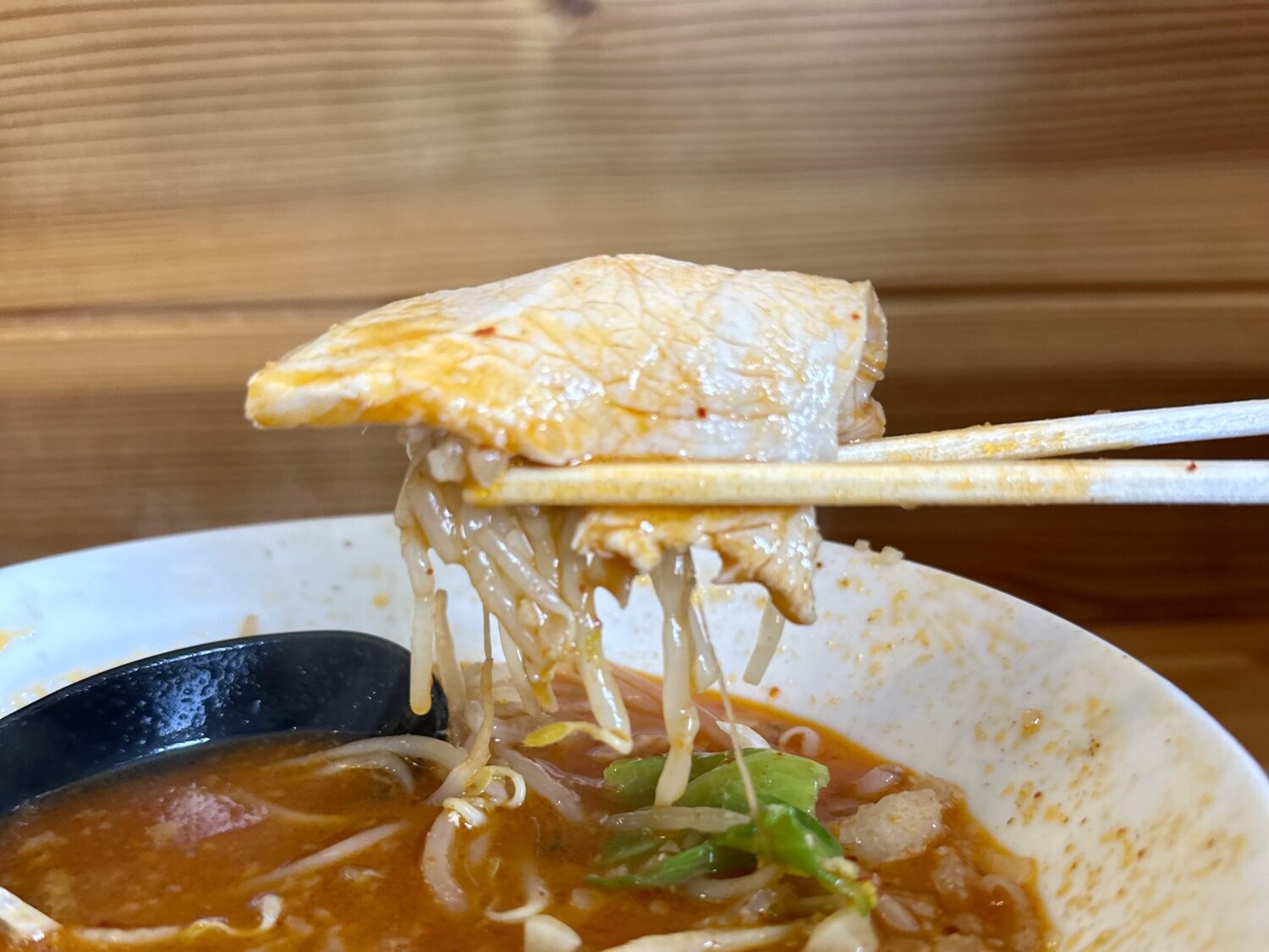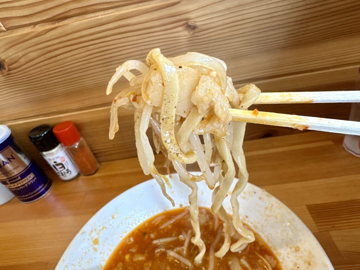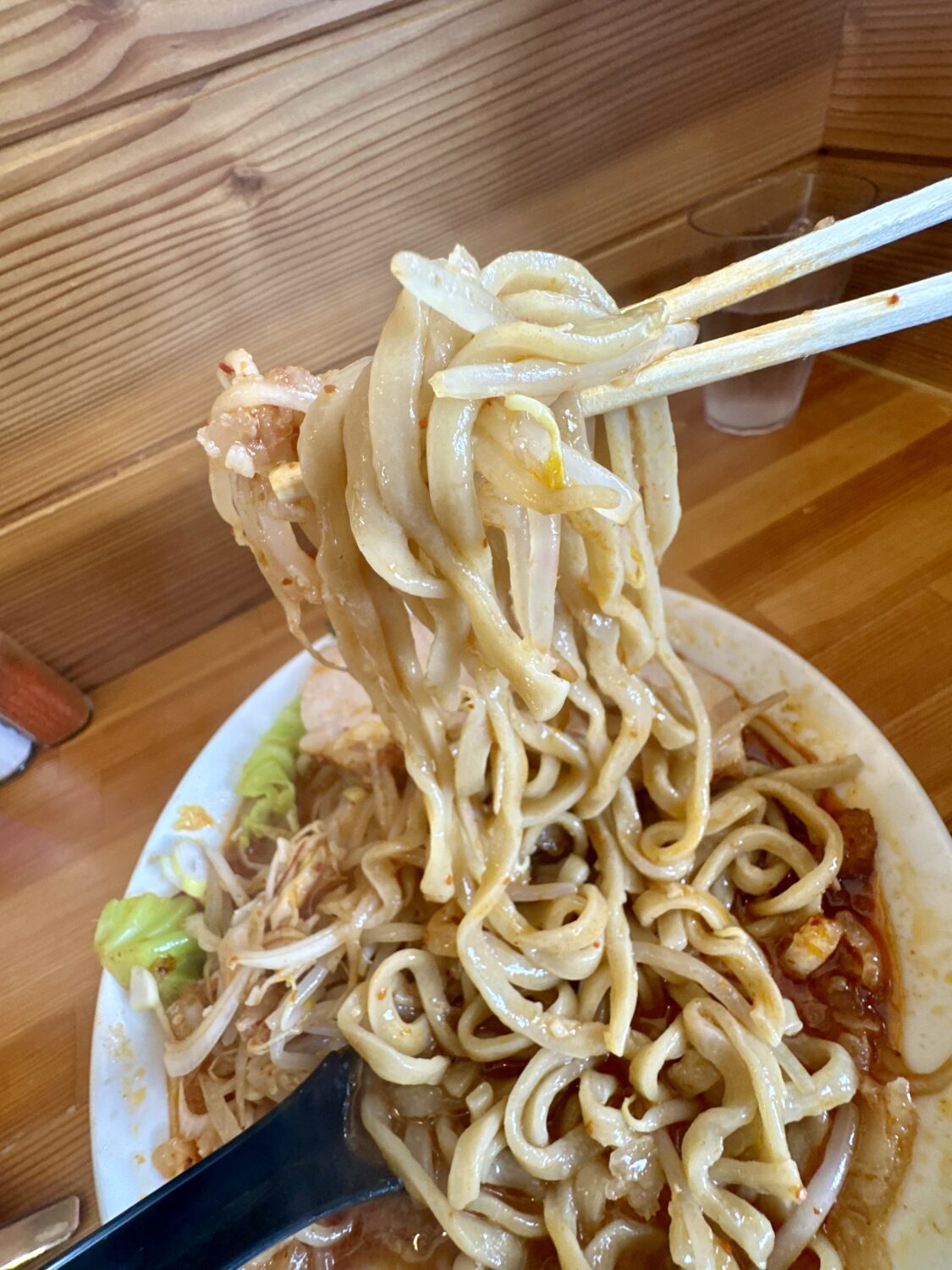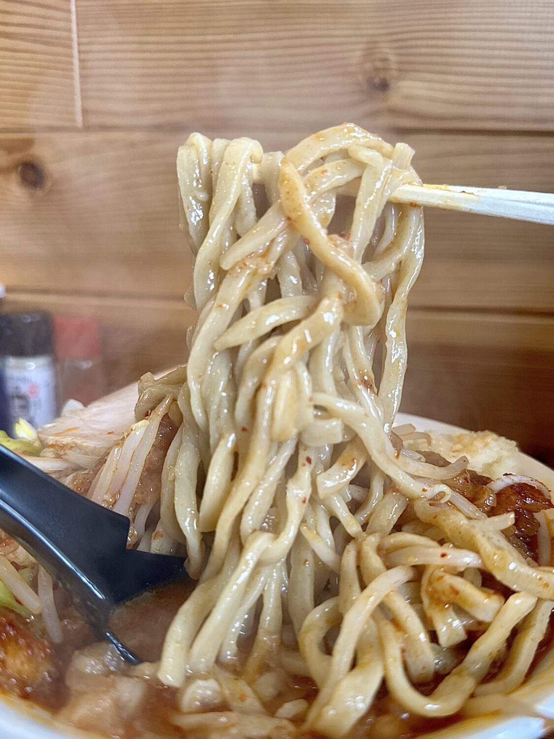 平打ちでガッシリでムッチモッチでちょいワッシ、しかもこの中毒性高いスープに浸ってるグワゴワヌルテッカって、、好き(*ノ∀◕ฺ*)
