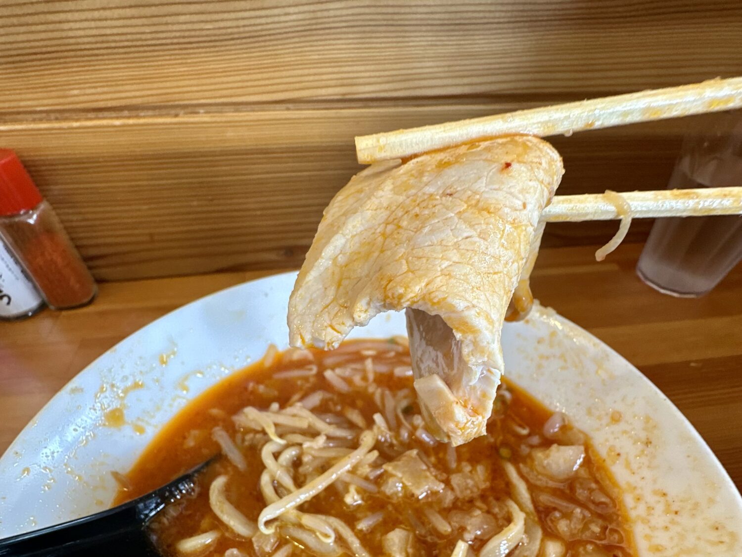 俗に言う”ブタ”とは違う、ちょい厚めぐらいのシットリチャーシューは後で巻かれる運命だと思う