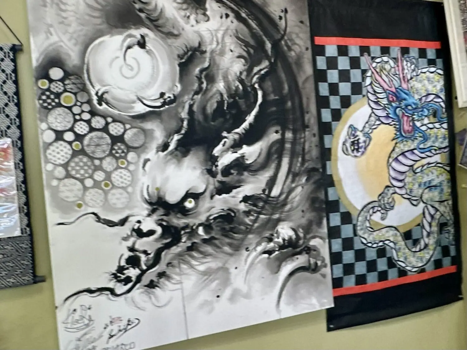 ギャーッ!、陰影だけで表現する龍だでばッ!、かと思えば炭治郎柄なカラフル龍もいるでばしッ!(;☣.益☣. )