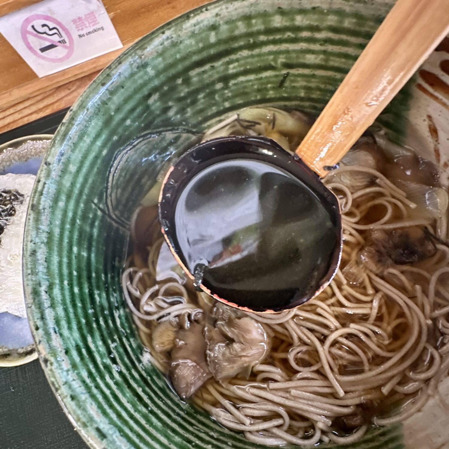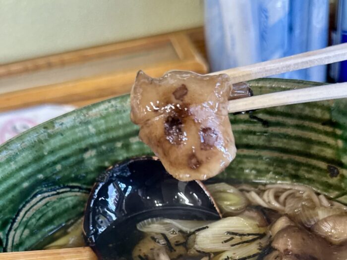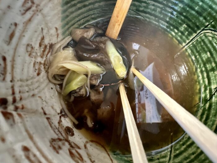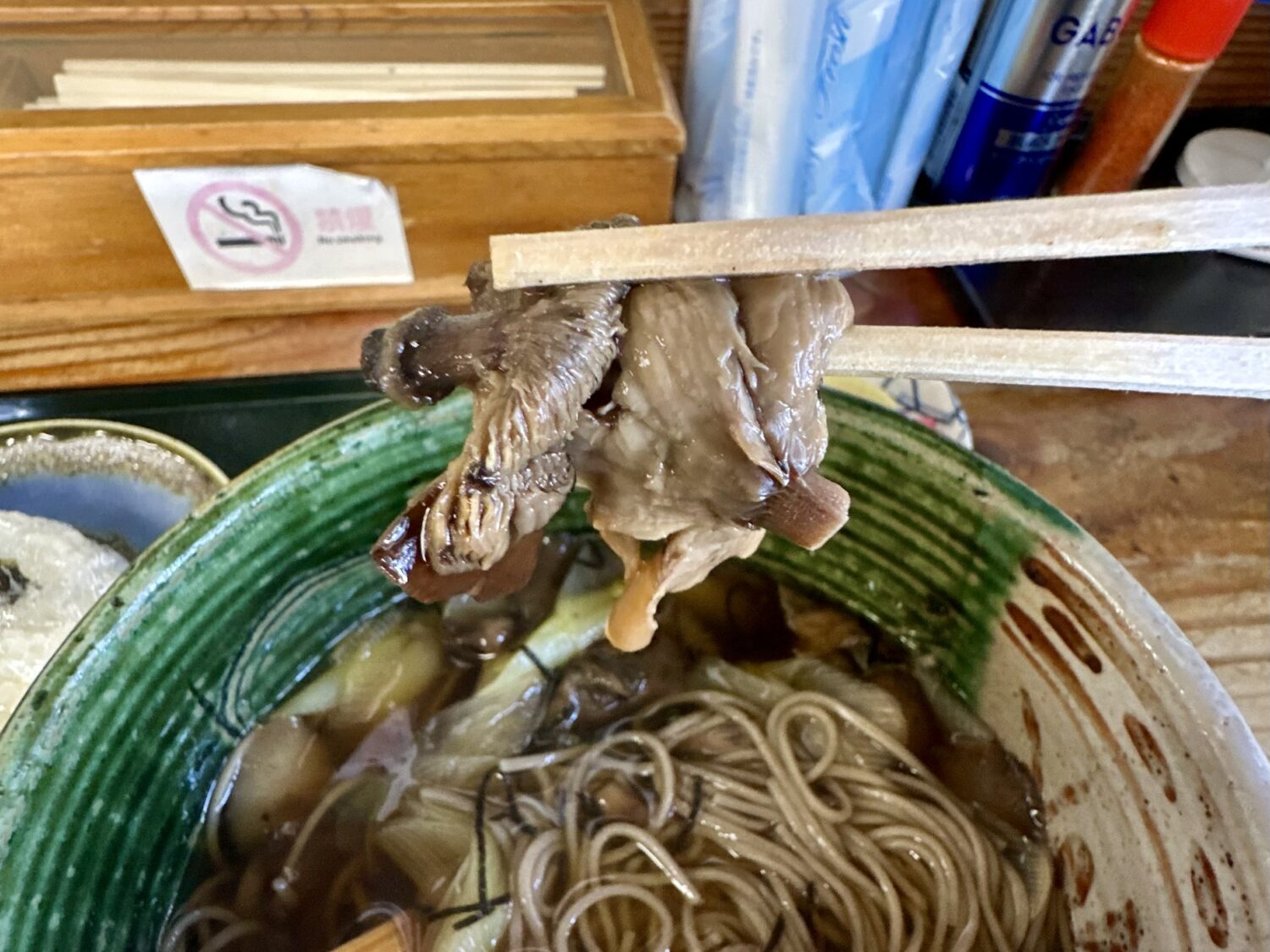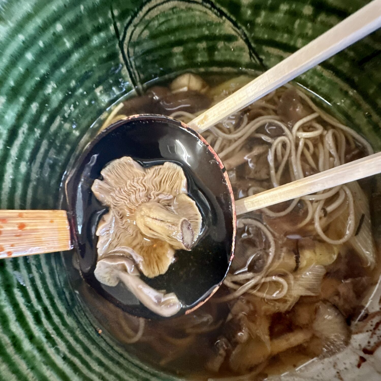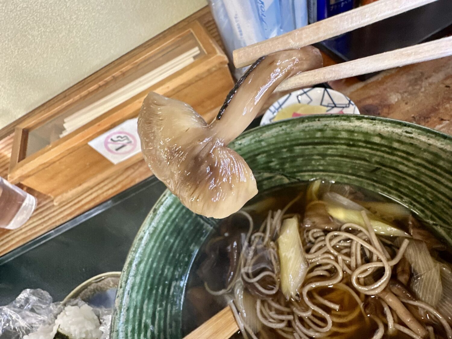 丁寧に拵えられたオダシに上積みされる独特な旨味、かつて”三文出しても食べたい”と崇め奉られたナラタケの芳醇でウェッティな旨味が喉から上の粘膜全部を喜ばす。