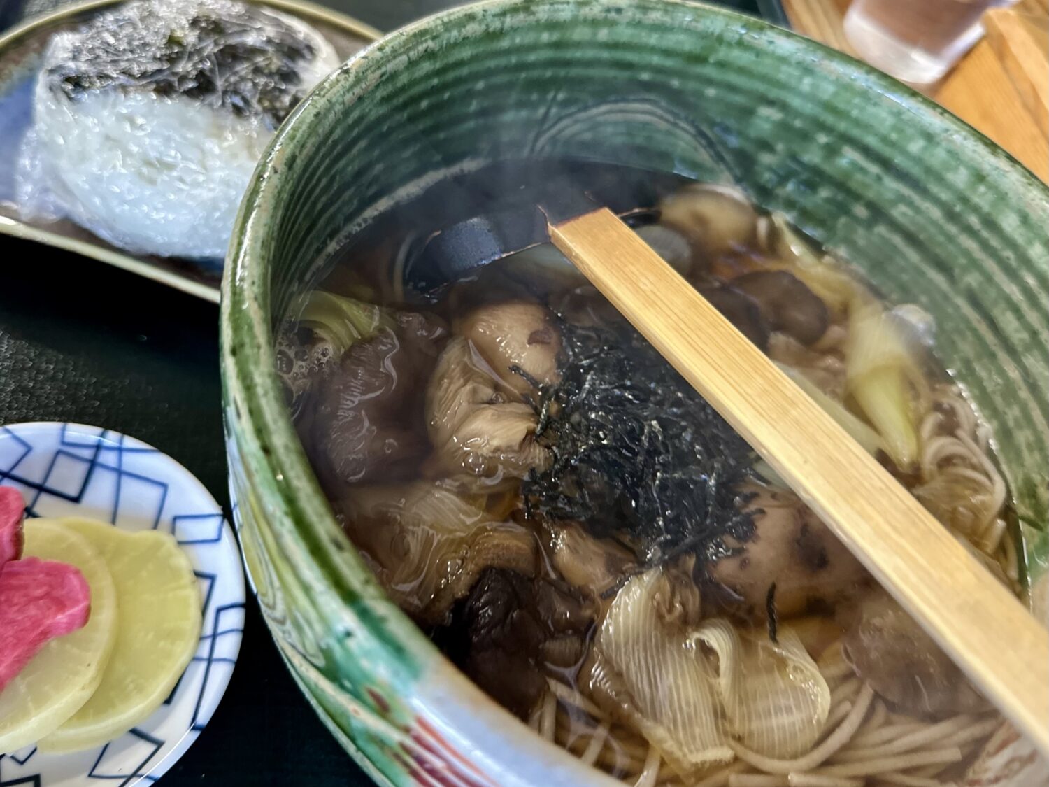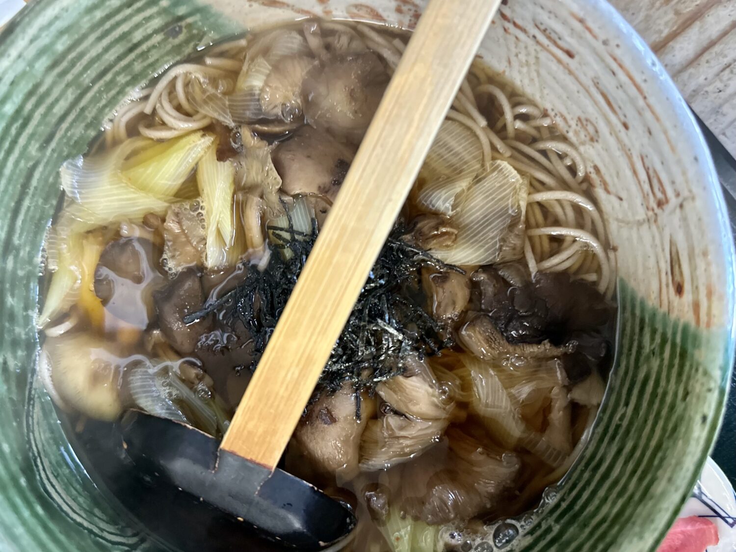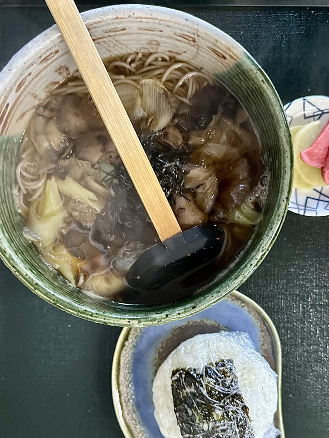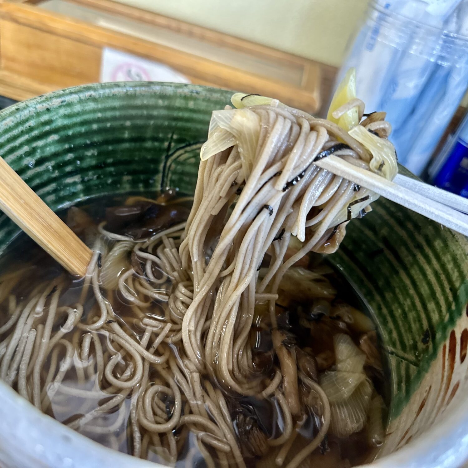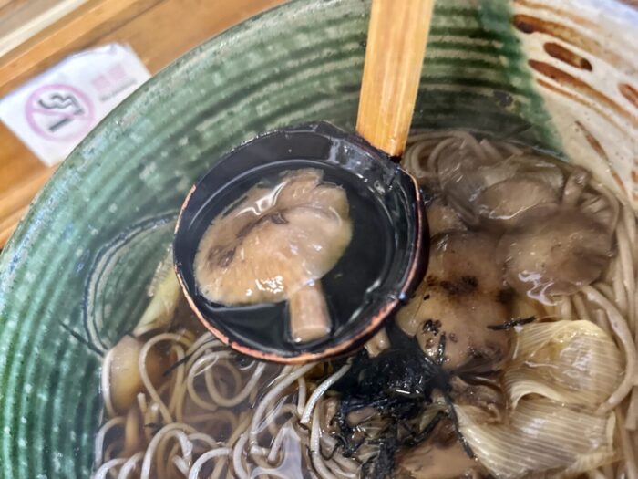 丁寧に拵えられたオダシに上積みされる独特な旨味、かつて”三文出しても食べたい”と崇め奉られたナラタケの芳醇でウェッティな旨味が喉から上の粘膜全部を喜ばす。