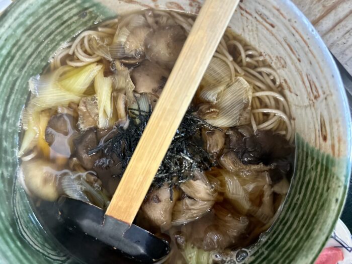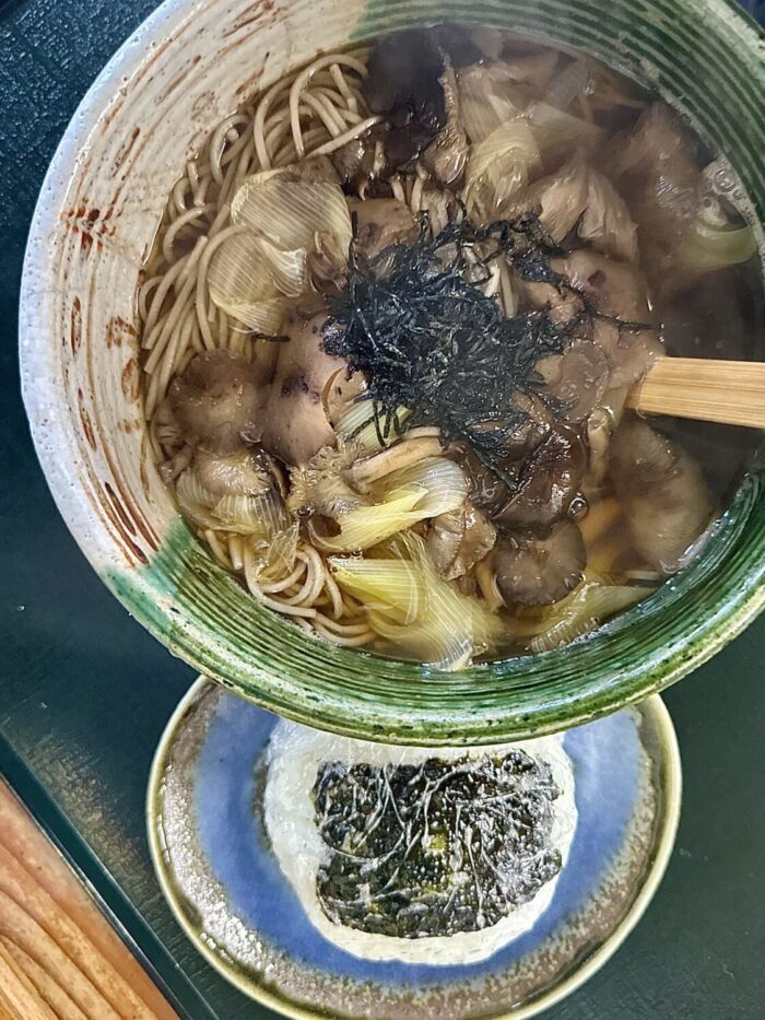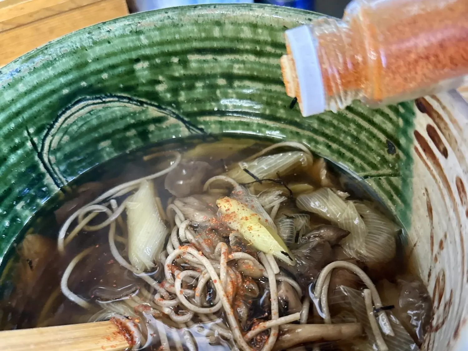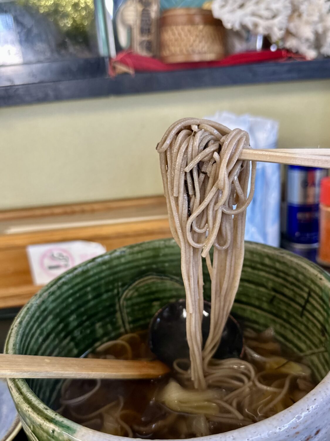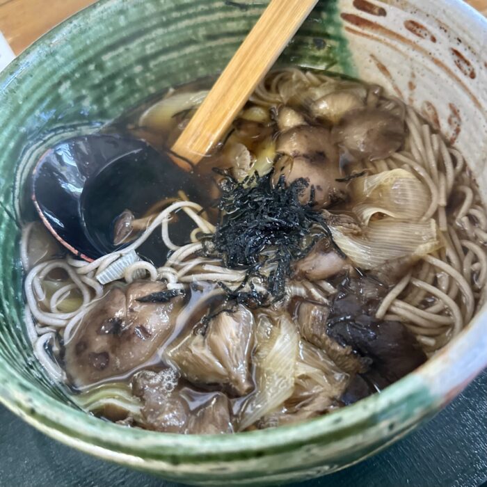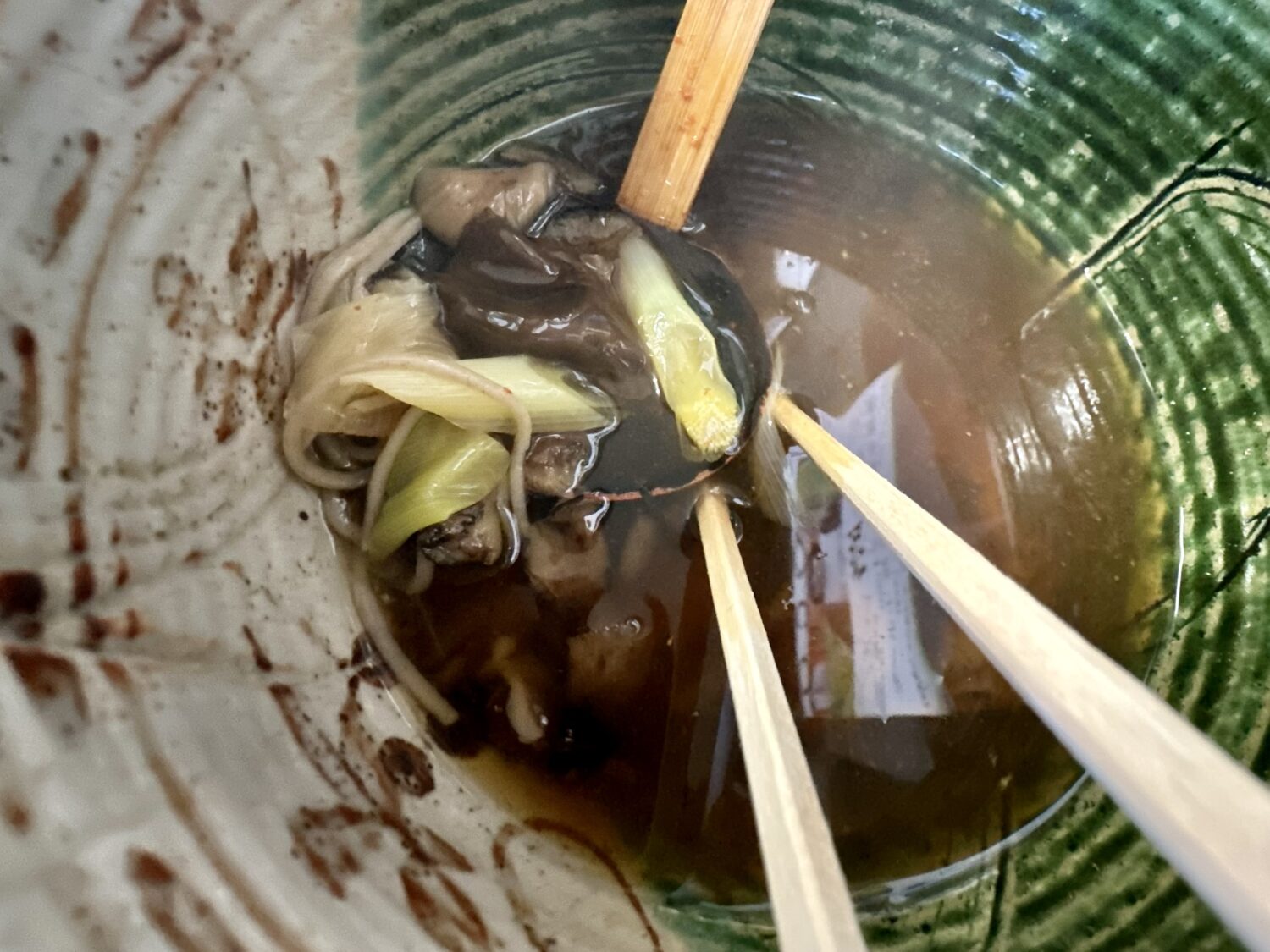 丁寧に拵えられたオダシに上積みされる独特な旨味、かつて”三文出しても食べたい”と崇め奉られたナラタケの芳醇でウェッティな旨味が喉から上の粘膜全部を喜ばす。