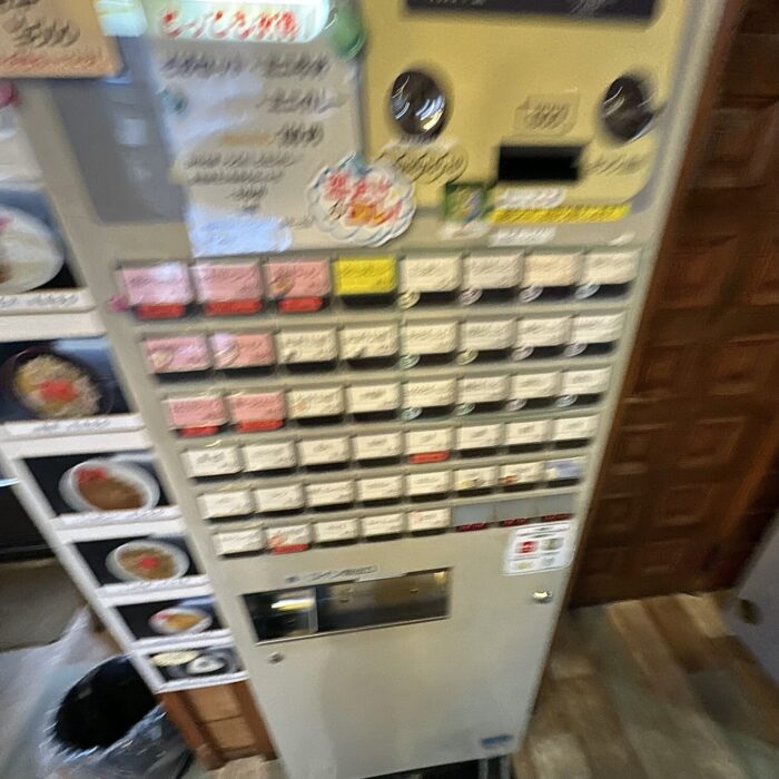 まずは入ってすぐ左手の券売機にご挨拶、光量不足と極度の緊張で手ブレ全開なのはご愛嬌