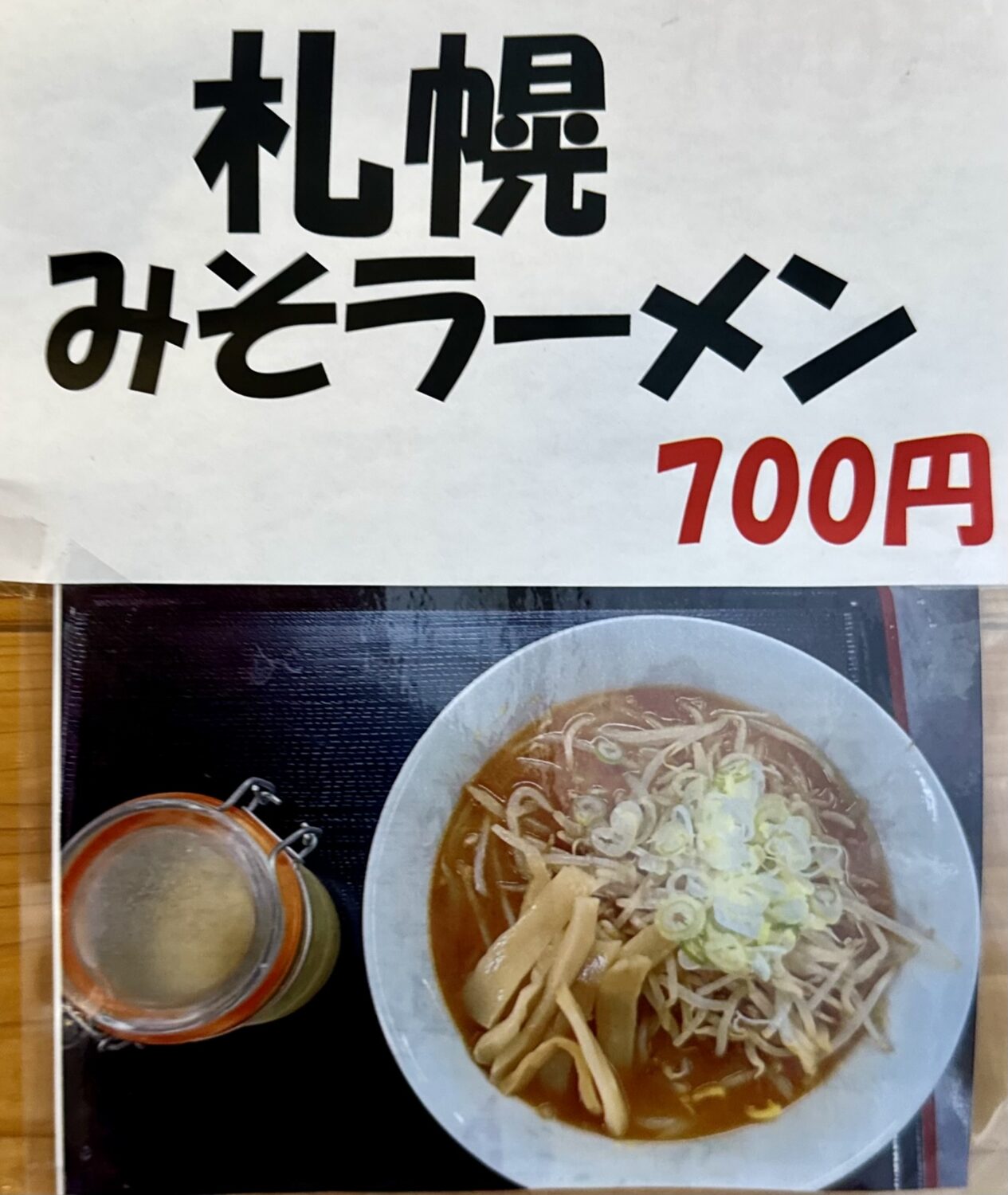 まるでドライブインばりの豊富なメニュー、選んだのは店主オススメ、かつ新メニューの【辛味噌ラーメン】税込750円。