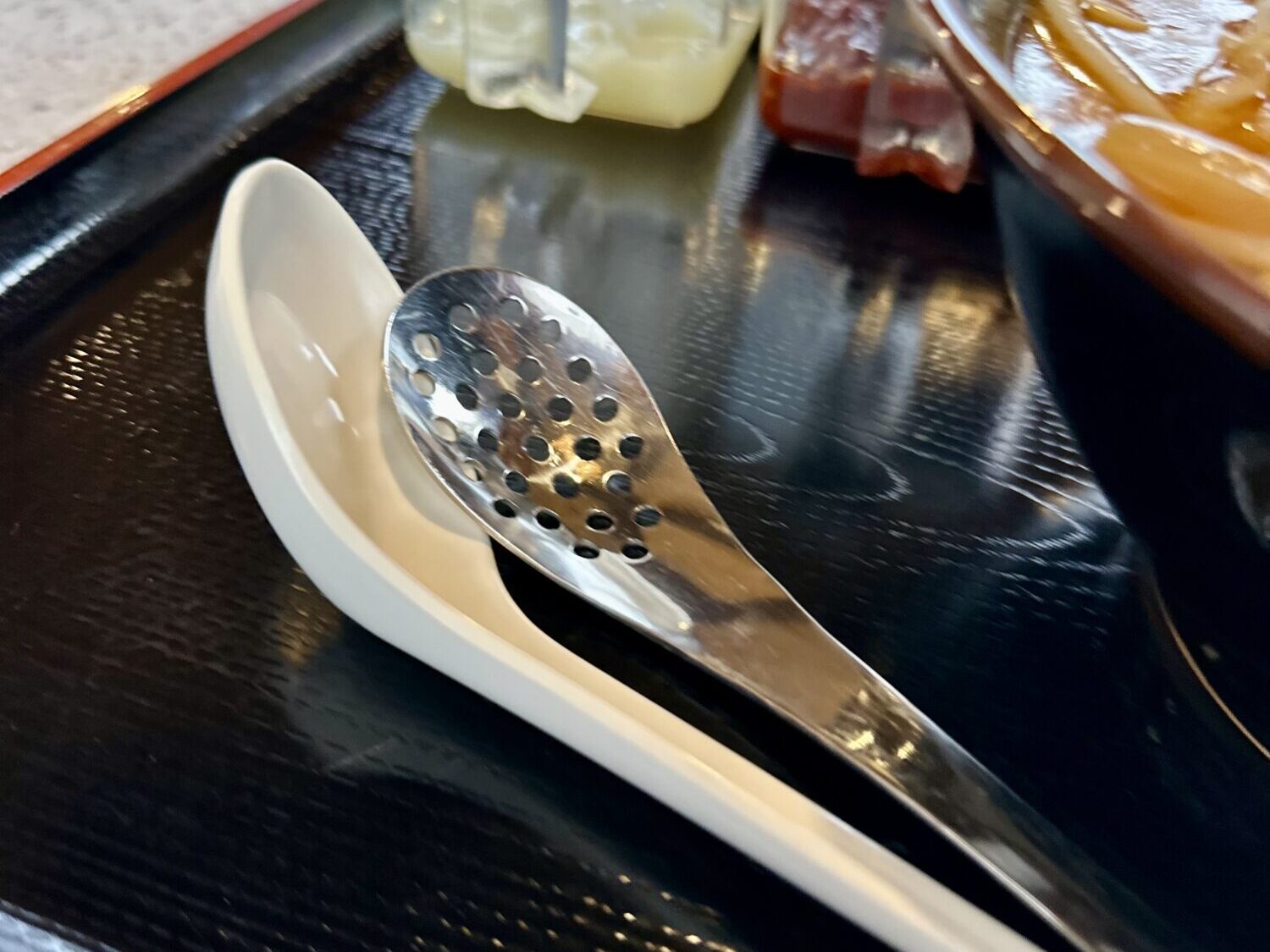 だから具の一片だって残さない、穴あきレンゲフル活用で全て根こそぎやっつけ喰う