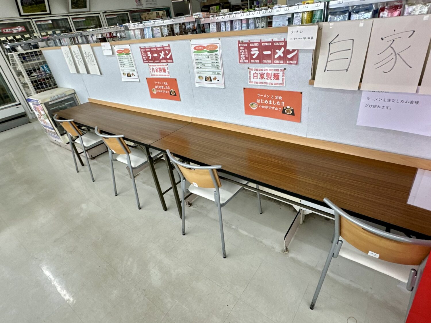 新たに店内常設なったイートインスペースはラーメン注文者4人だけの狭き門、週末なんかは混むべなぁ(๑′ᴗ‵๑)