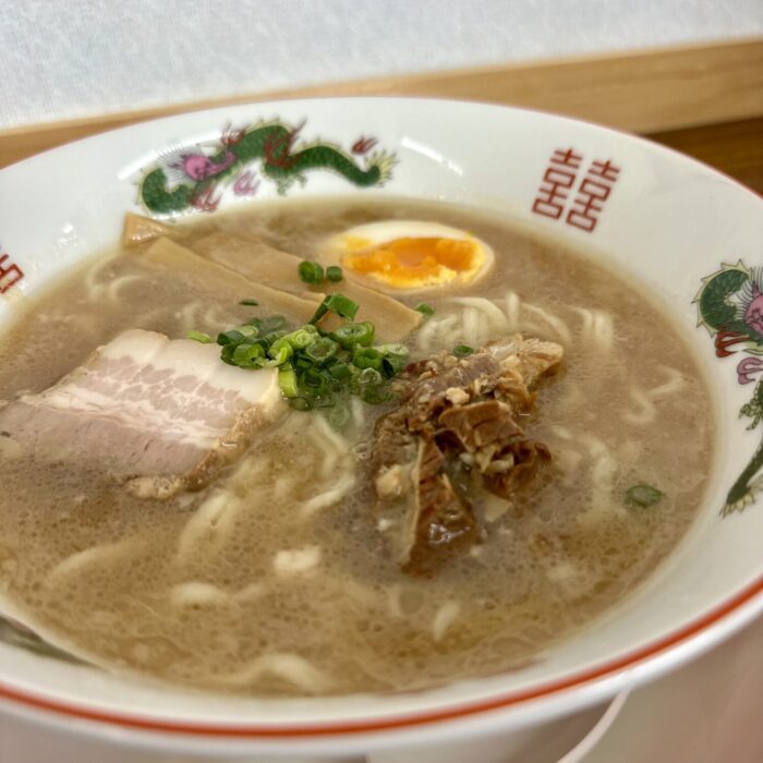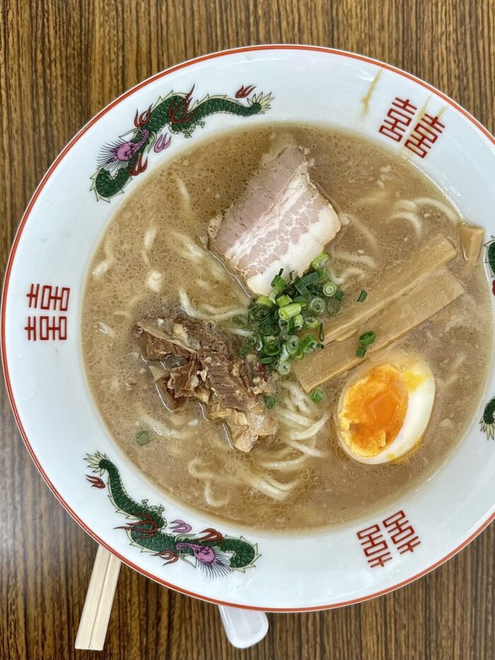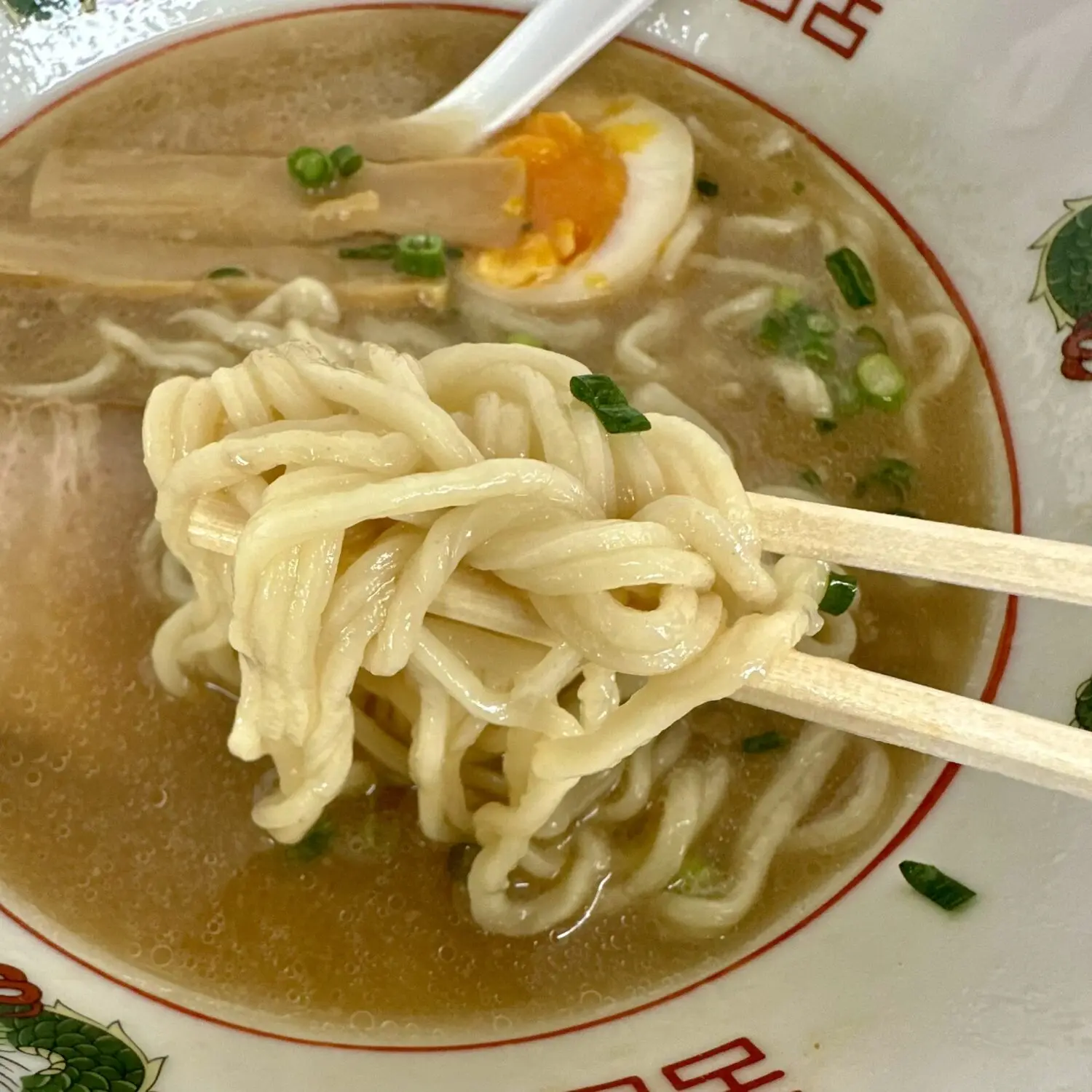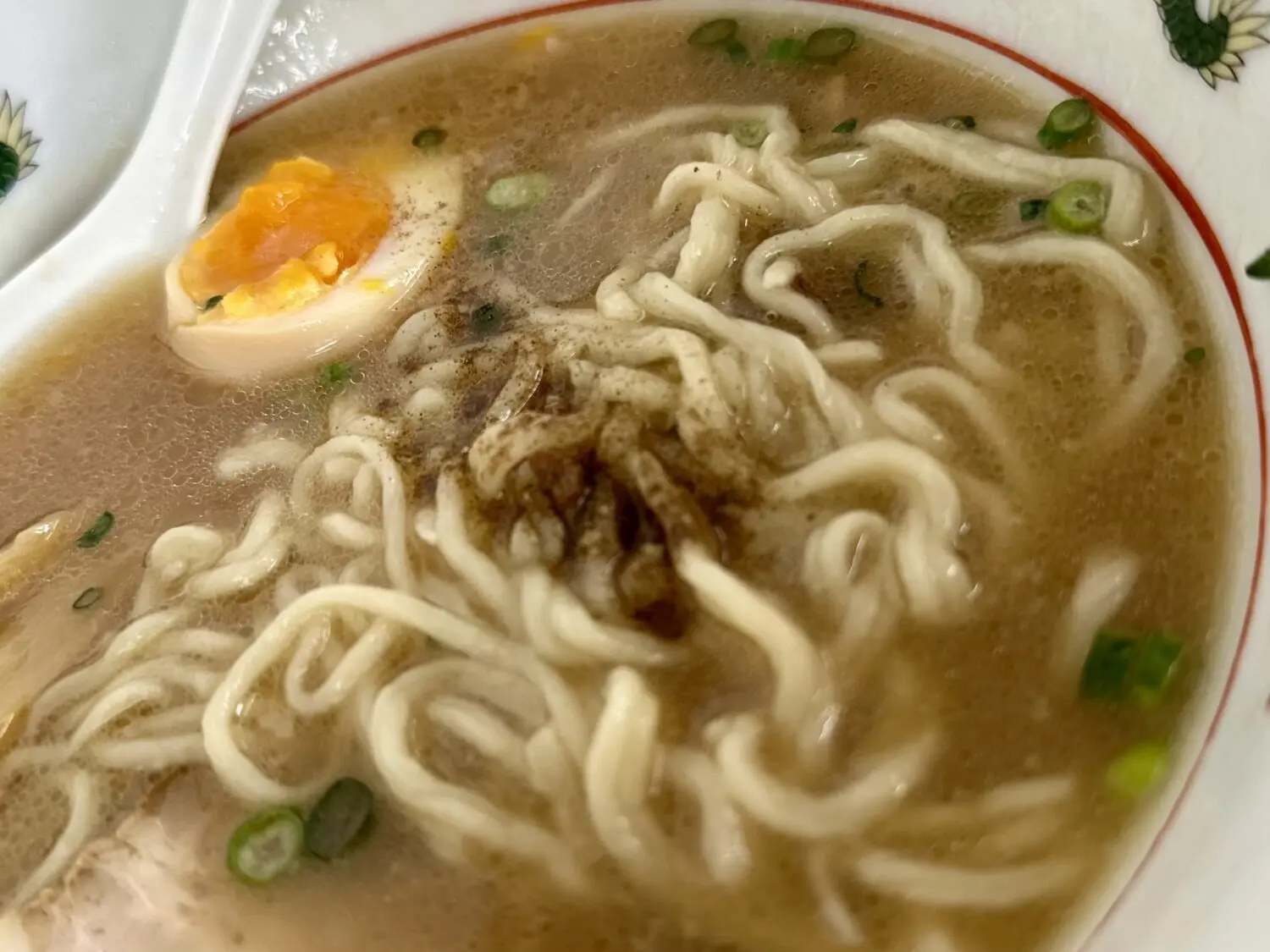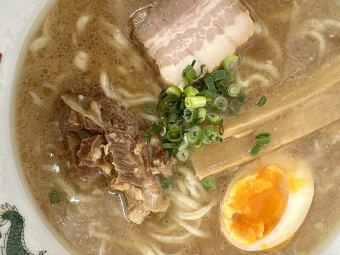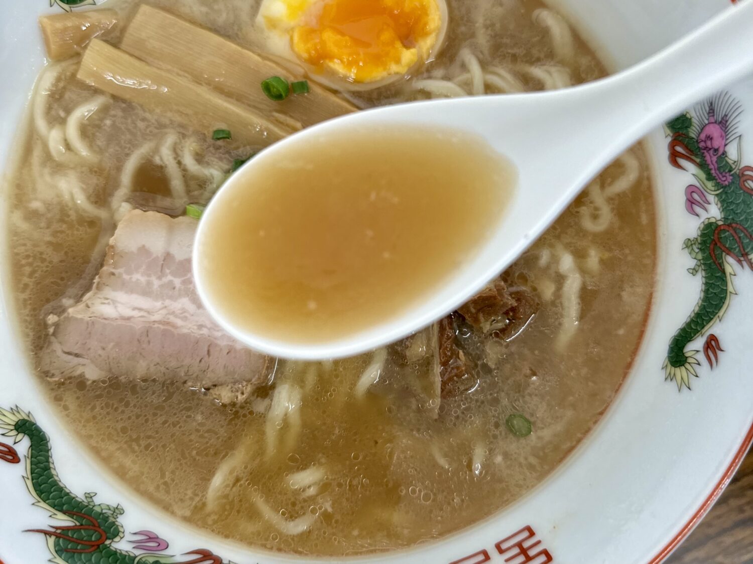 スープは表層にアブラ浮かんだ豚骨しょうゆの優しい色合い