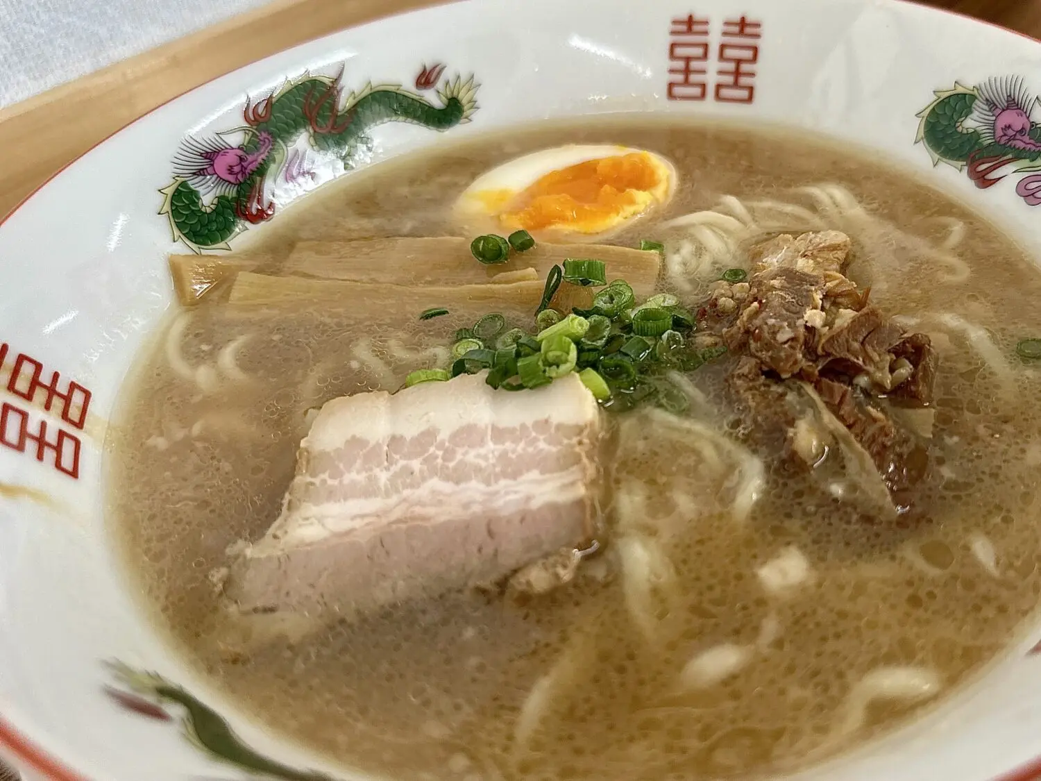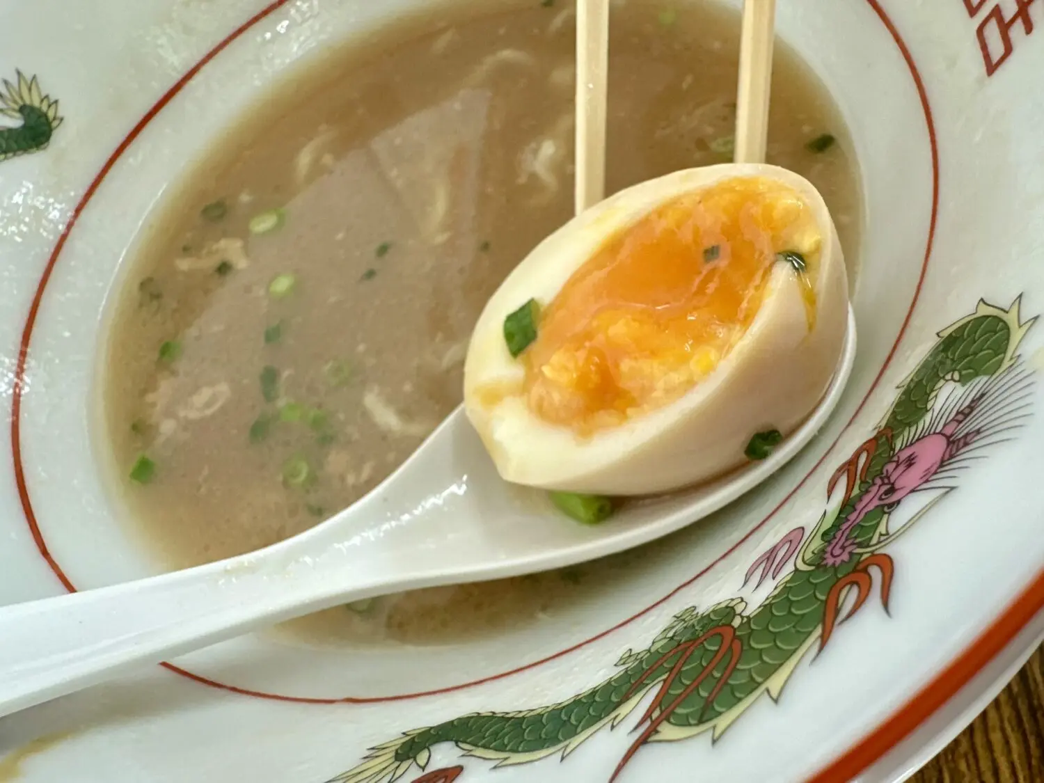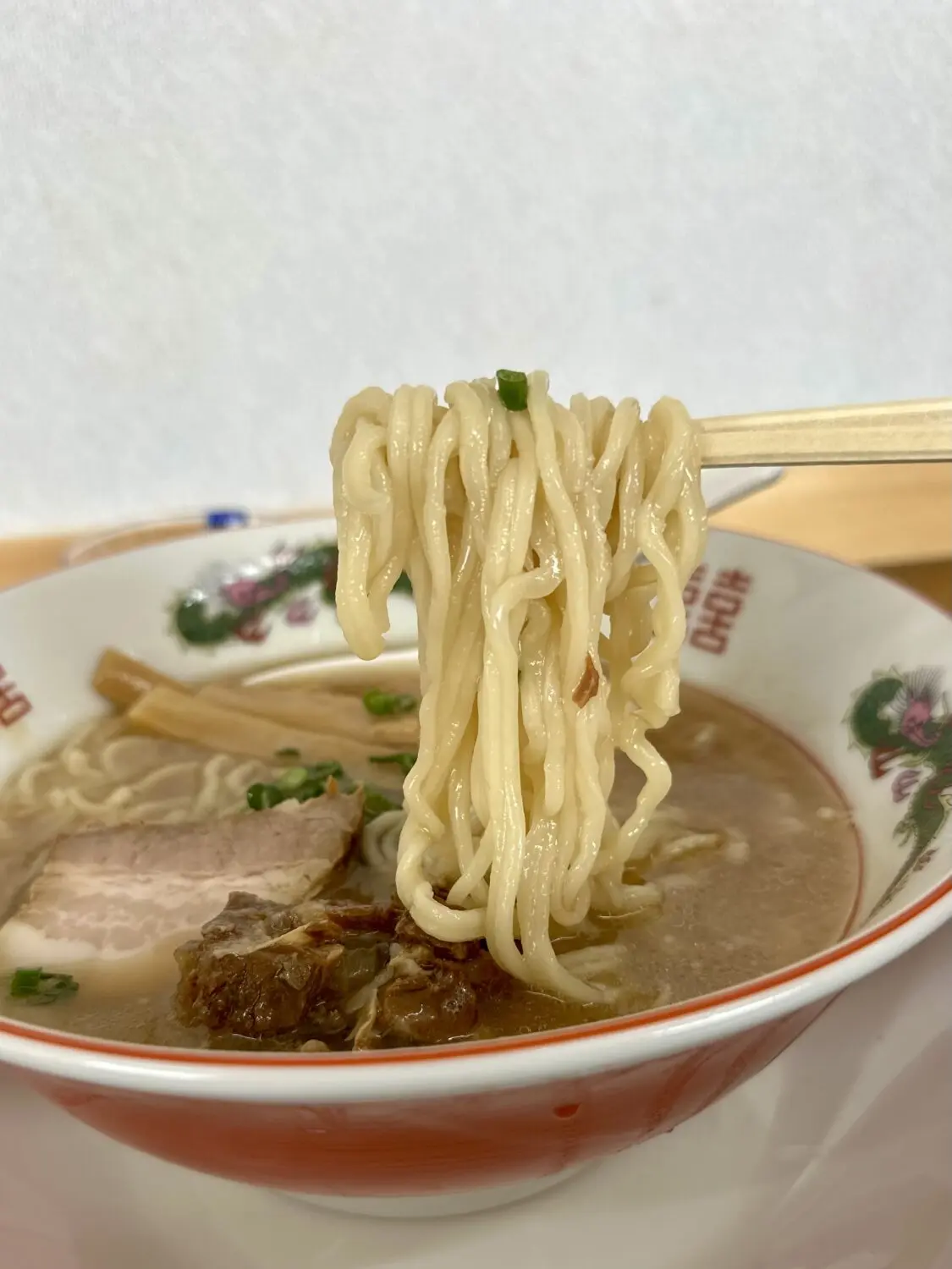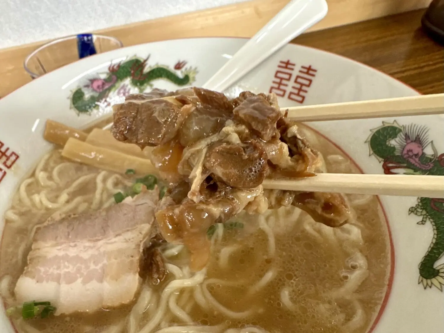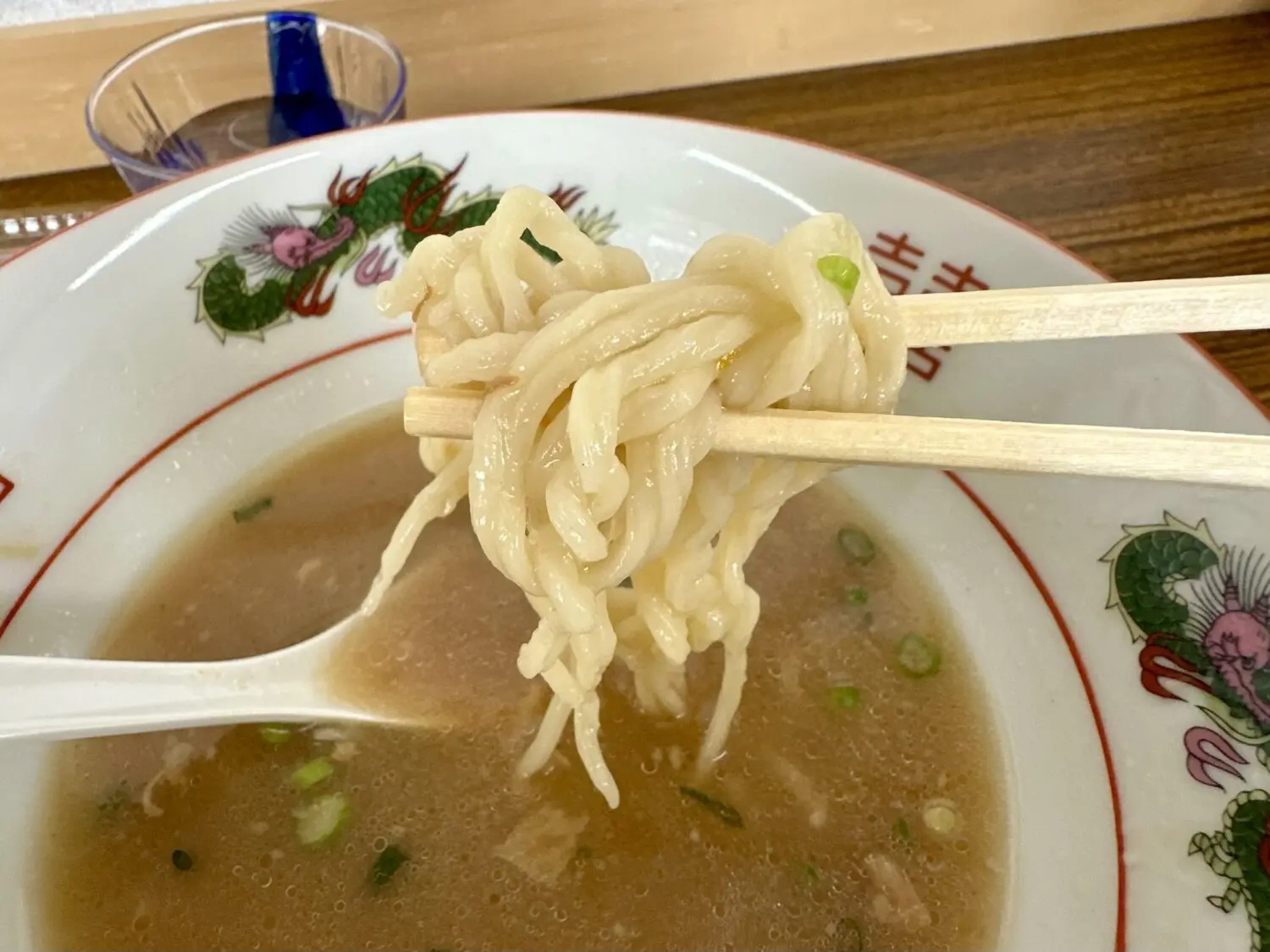 スープは表層にアブラ浮かんだ豚骨しょうゆの優しい色合い