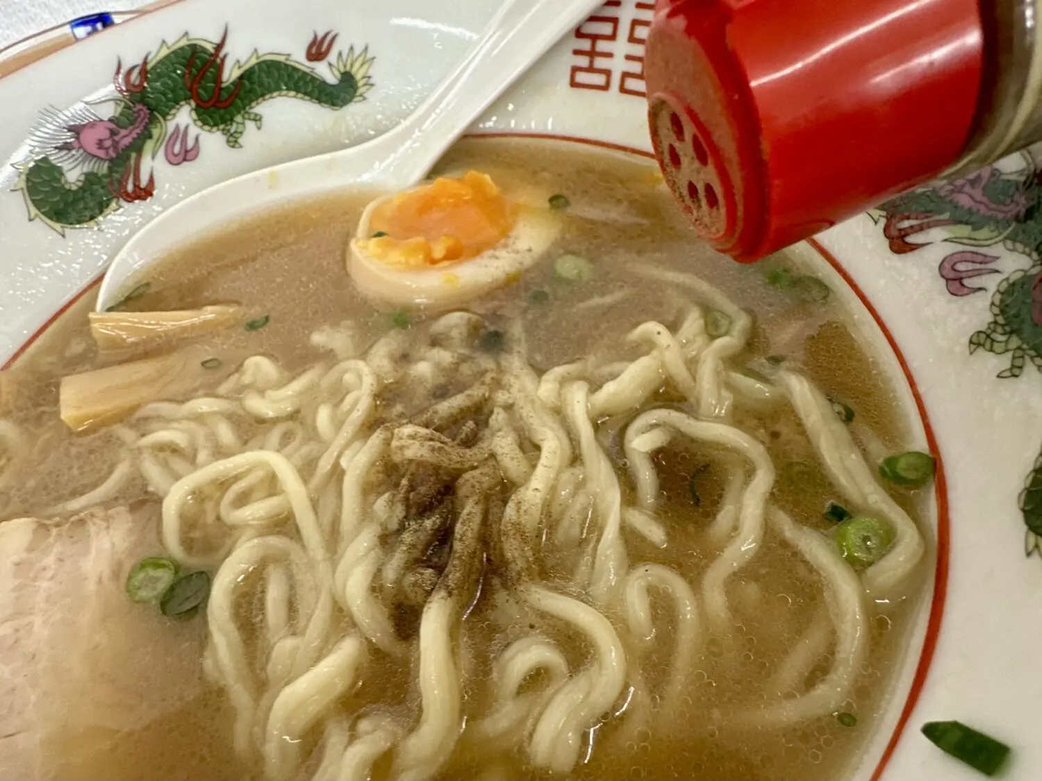 味変は卓上唯一のテーブルコショー、たぶんこの味にはもっと粗めのブラックペッパーの方が合うと思うぞ本当だぞ(っ´ω`)っ