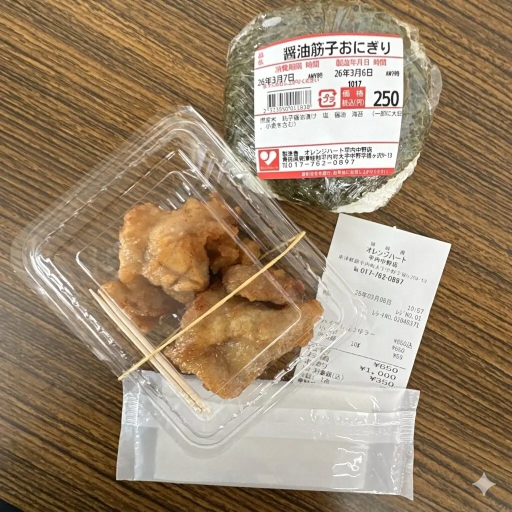 先に弁当やらオニギリやら唐揚げを買って、そのままラーメンと一緒にやるなんて体験もやっぱり俺等のオレハならでは。
