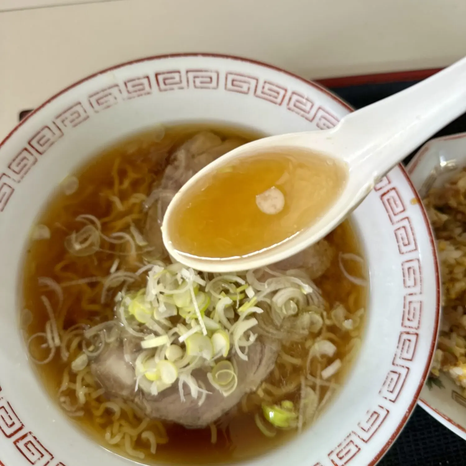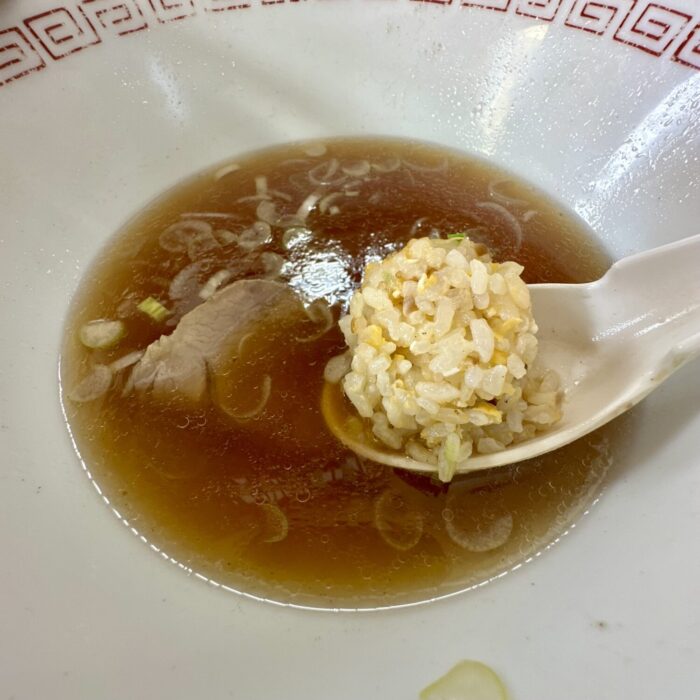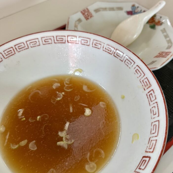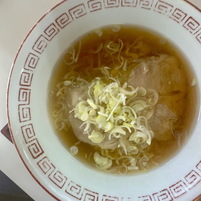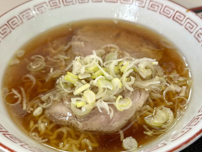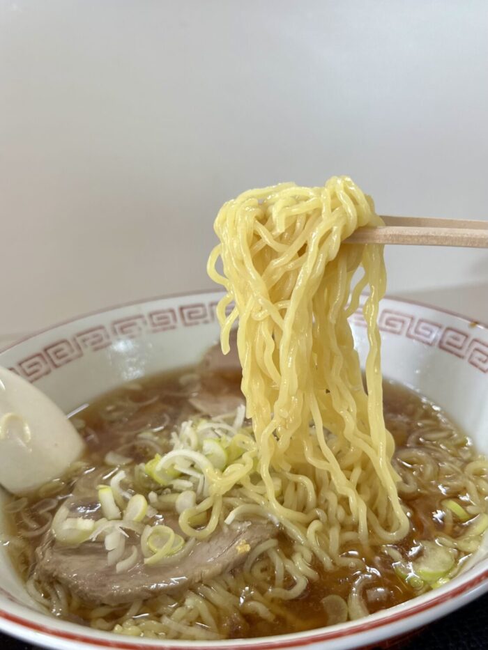 温度ぬるめのすんなりスープ、尖りもなければ深みもそこそこ、つまりザ・食堂ラーメンをこよなく探す人なら泣いてすする庶民味
