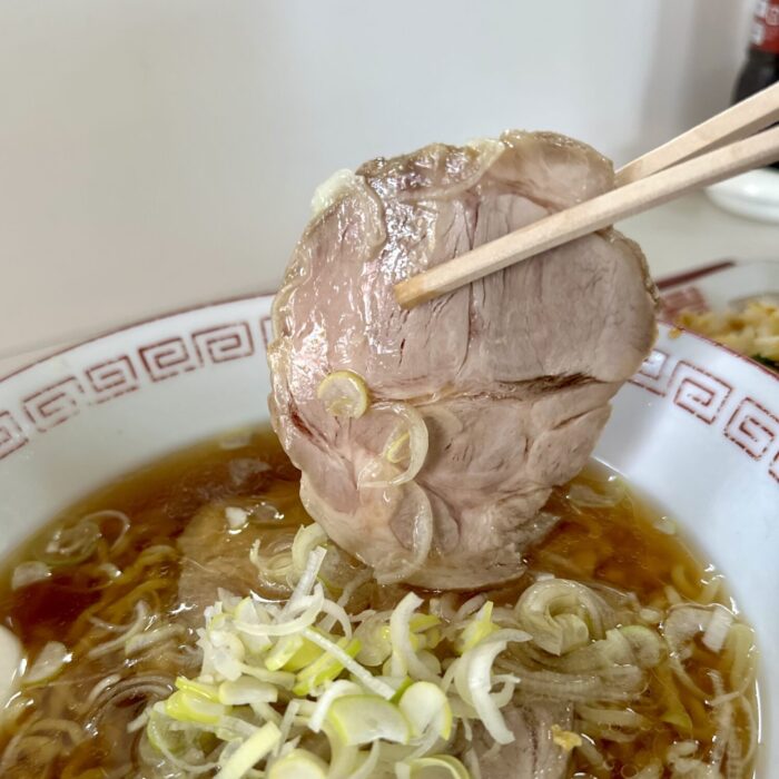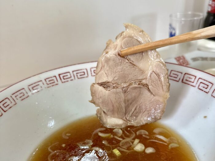 チャーシューは立派そのもの、厚みよしケモノ感よしのウデだかカタの立派なやづ