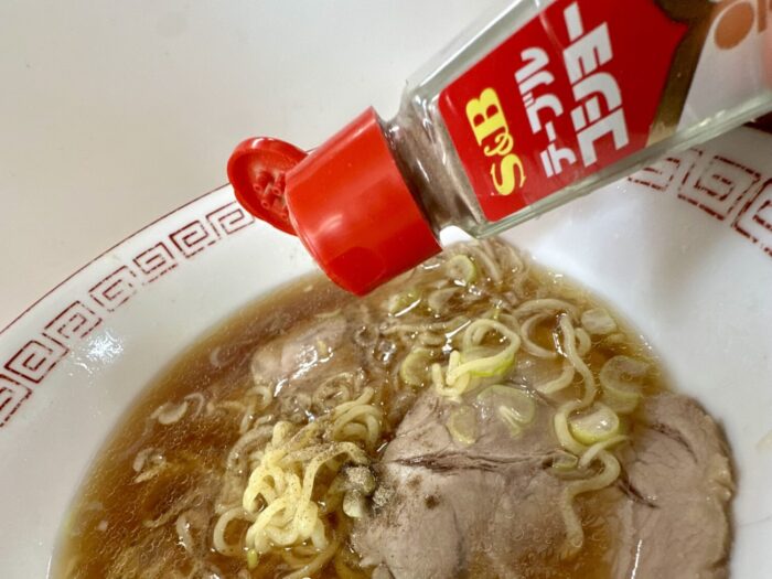 テーブルコショーは多め掛けが基本、あとでどれだけノドガワキしようがそれはそれで楽しむ覚悟がここでは大事