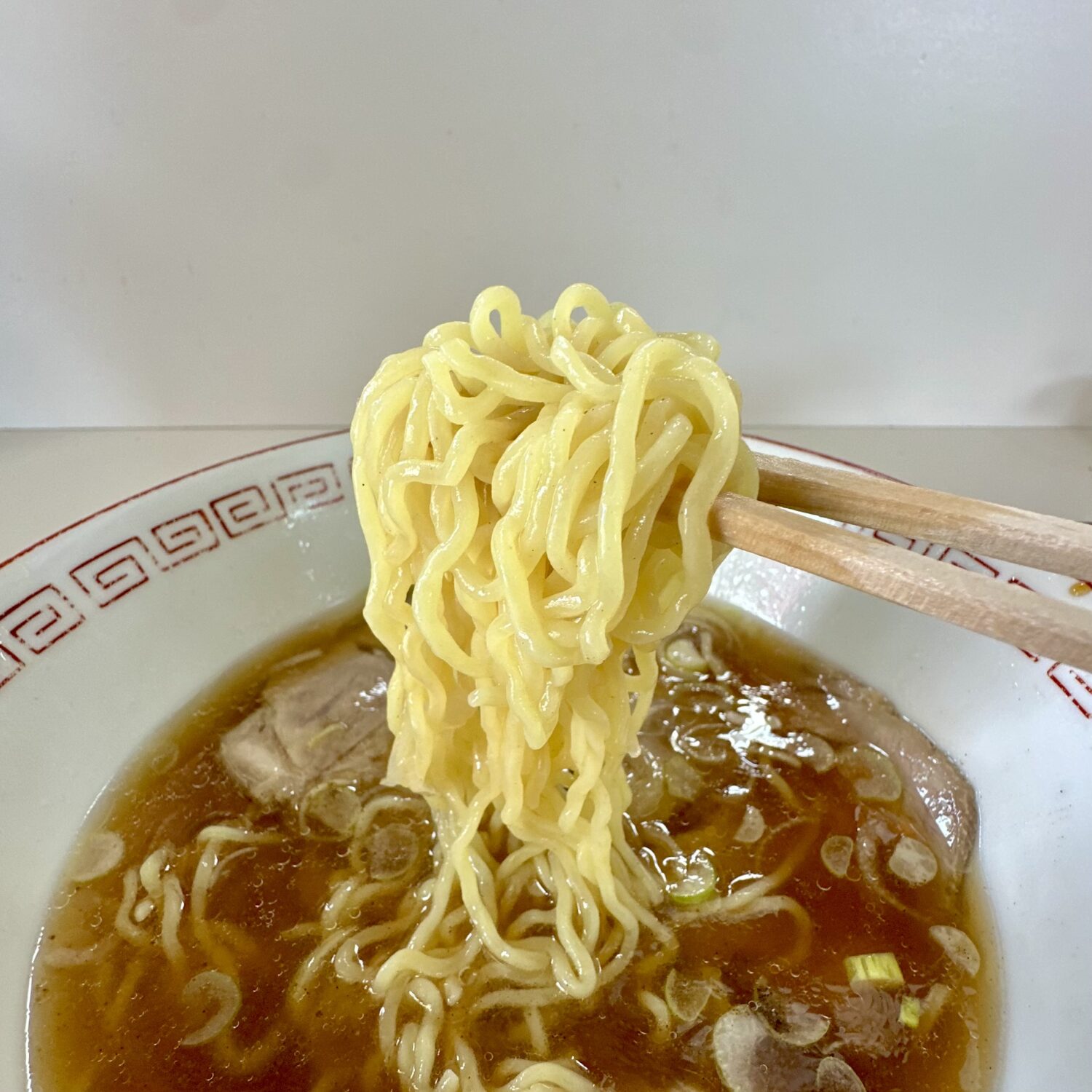 ひと口目からガツンとぬるめのスープ、茹ですぎ平常運転なフェニャフェニャ麺、