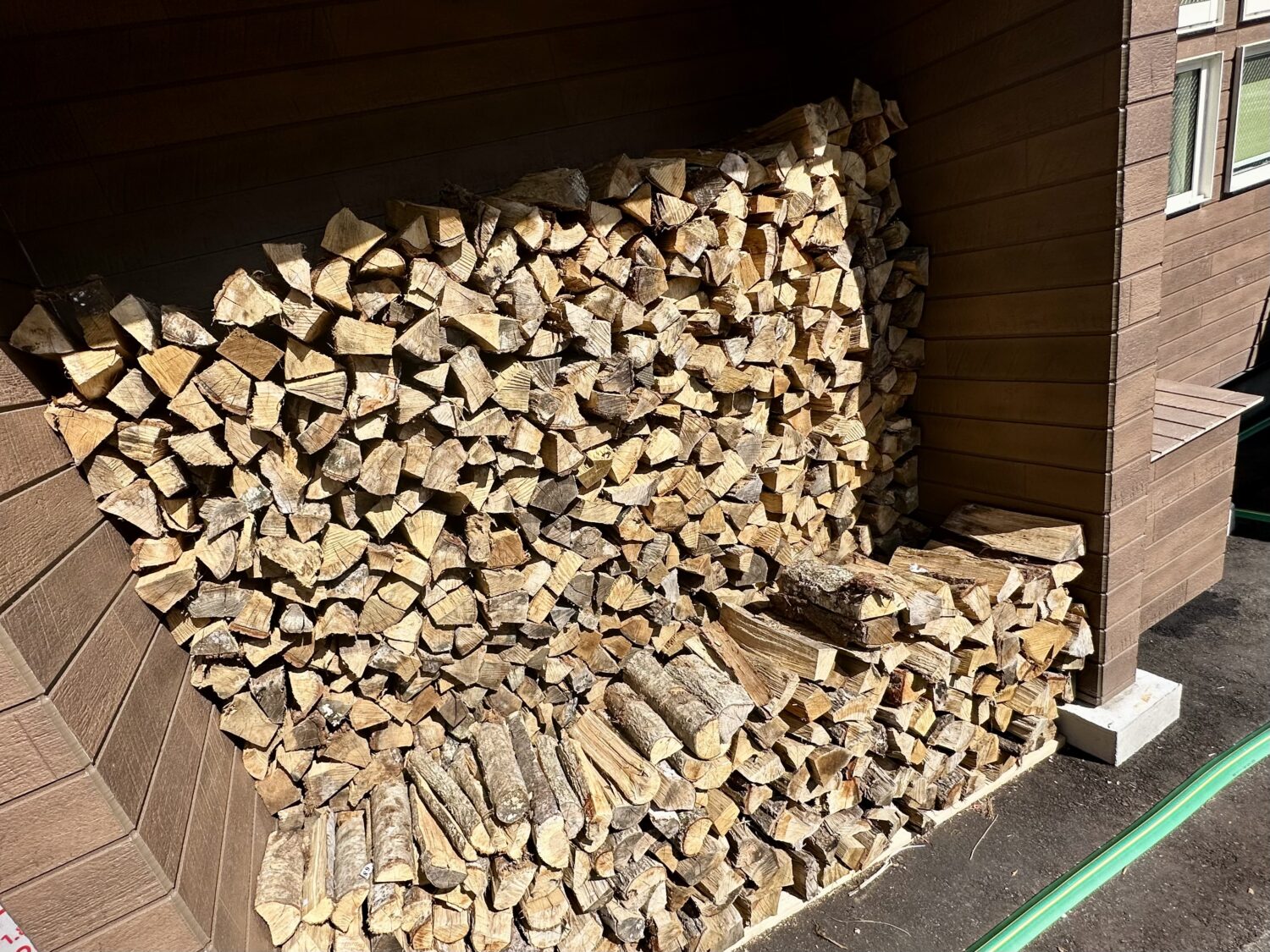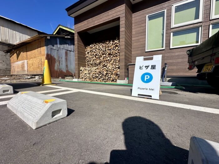 店脇に積まれた薪の山、これに火ついた薪窯でピザに魂込もるのとか想像するだけでお腹もキュンキュン